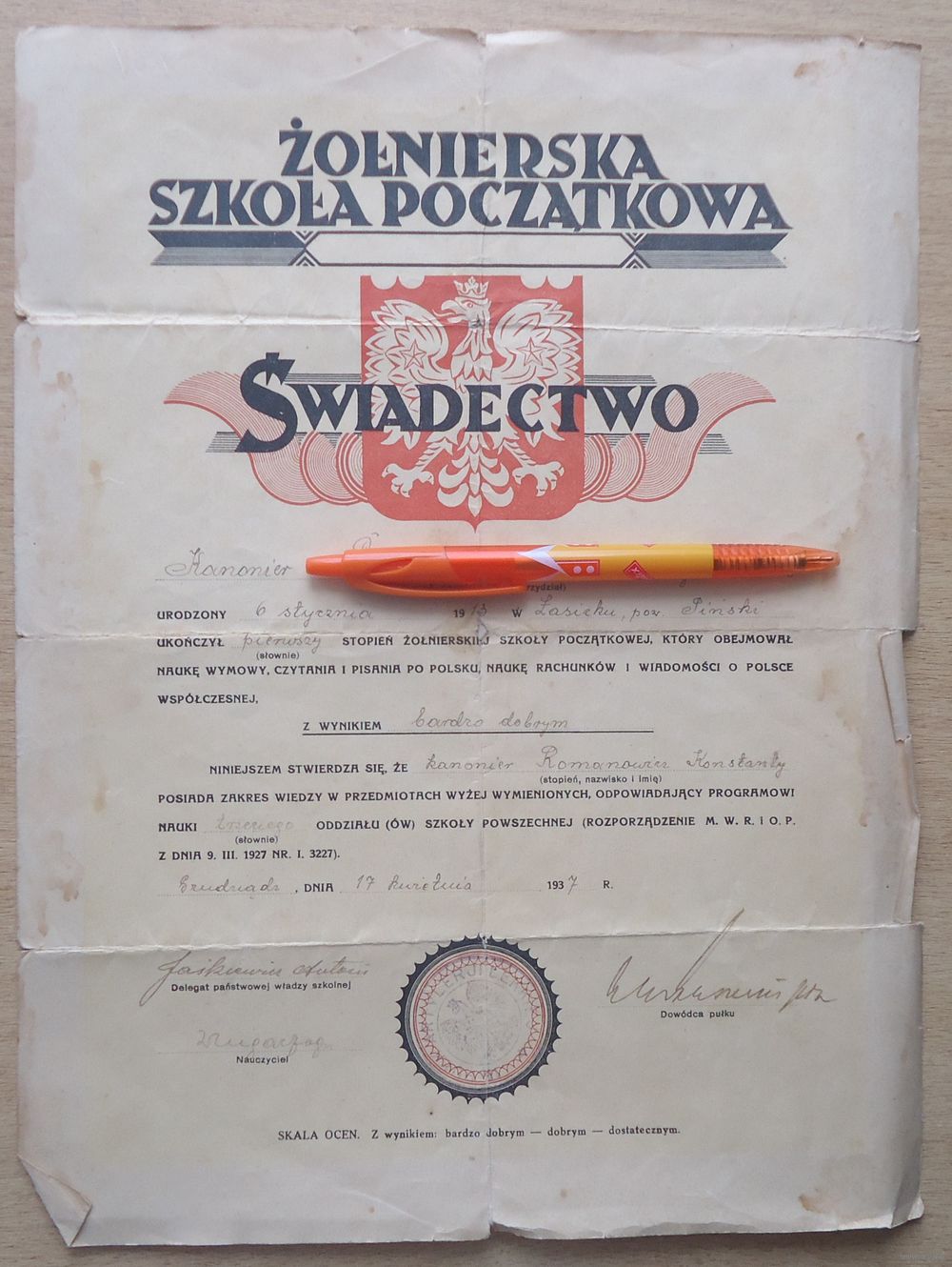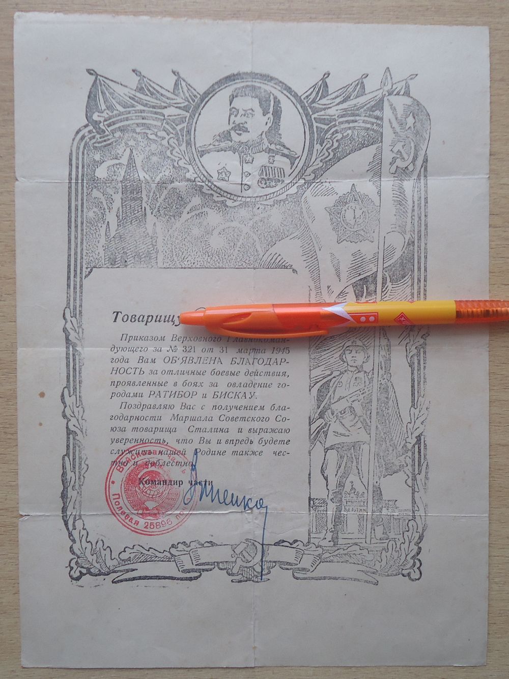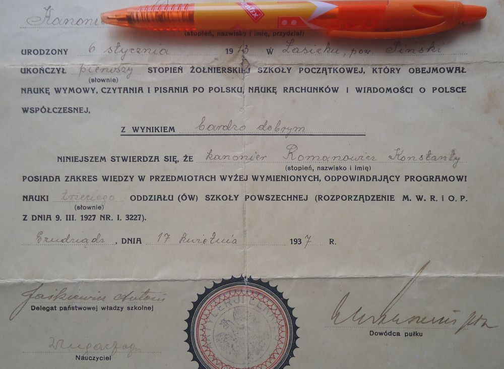 Свидетельство об окончании солдатской школы, благодарность Главнокомандующего - оба документа на 1 человека.