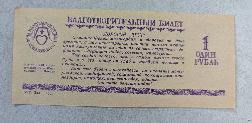Благотворительный билет Минск