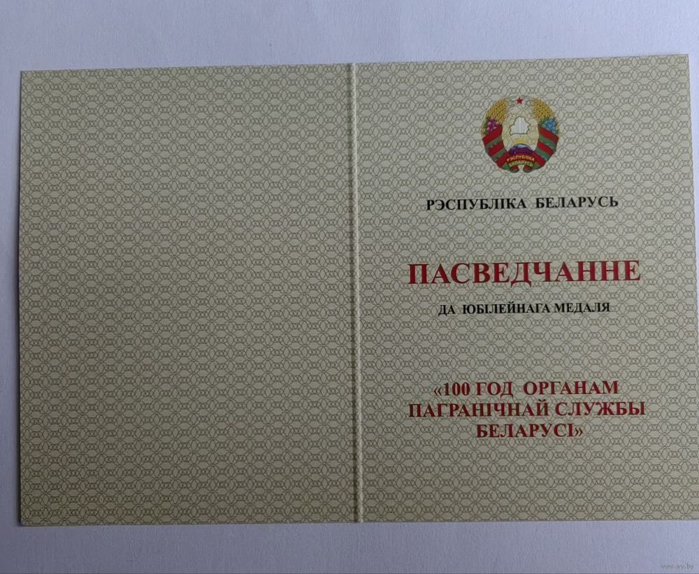 Бланк удостоверения к юбилейной медали 100 лет ПВ РБ