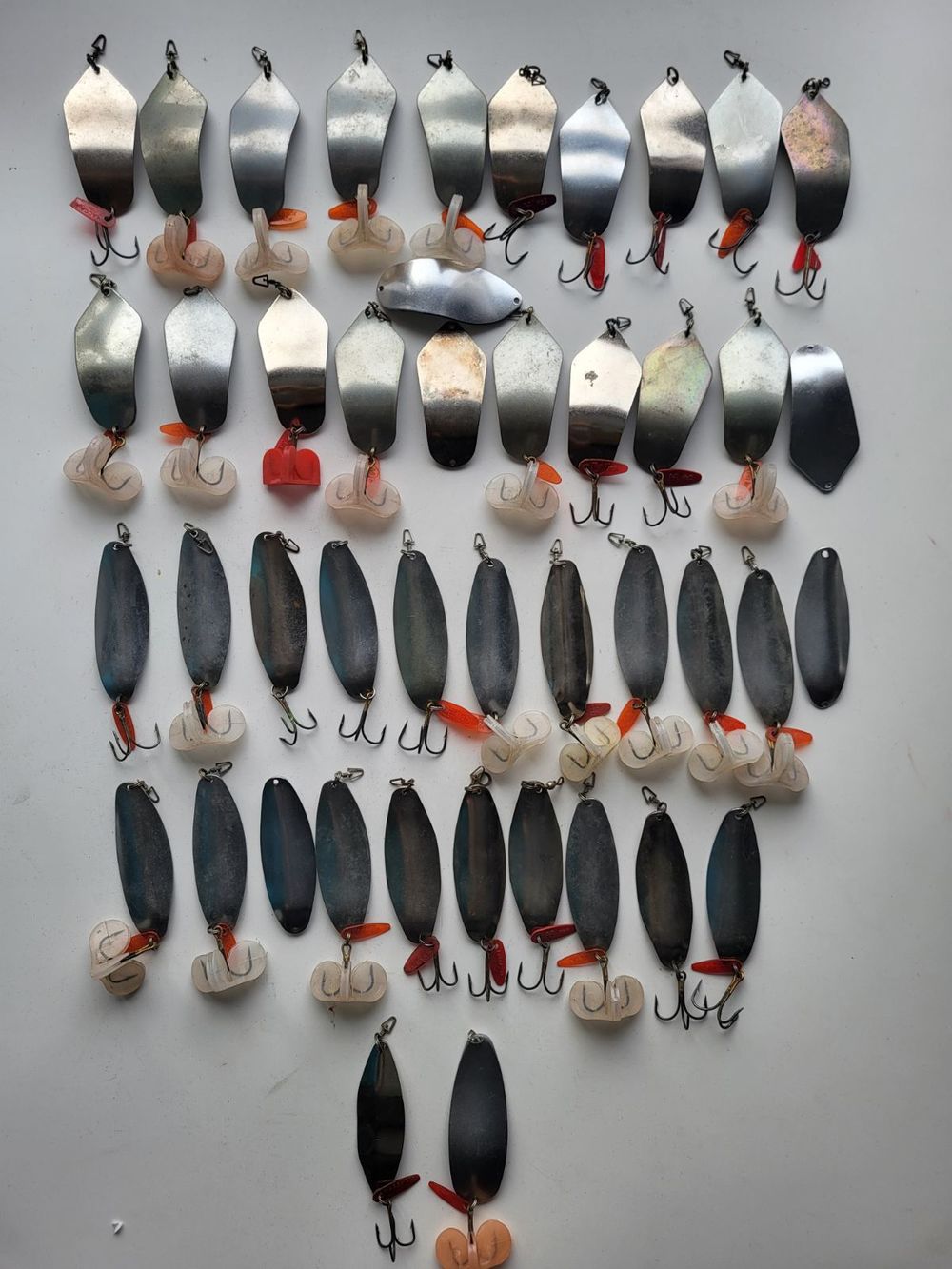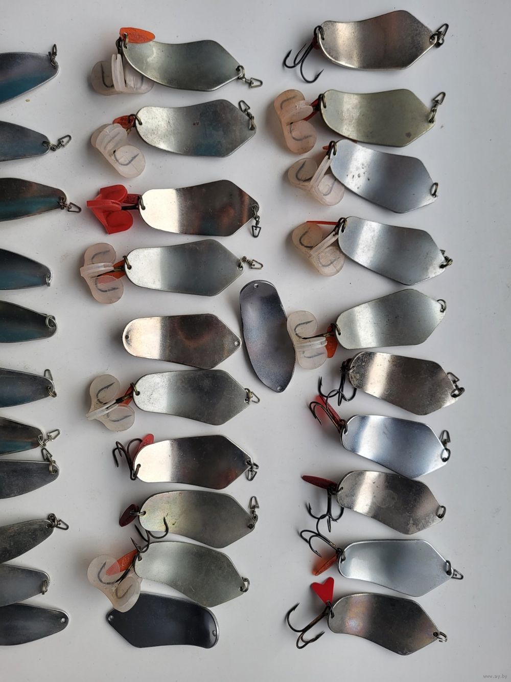 Блесна Днепр, Березина, Лахва, Сож, Реста из набора летних блесен "Могилев" завод Техноприбор, СССР. Магнитятся. Всего 44 шт . Цена указана за 1 шт, наличие конкретной уточняйте. Есть совершенно новые. Смотрите и другие мои лоты. все вопросы до ставок.