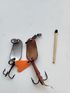 Блесна из набора "НЕВСКИЙ" Завод пластмассовых спорттоваров г. Отрадное, СССР. Всего 2 шт, цена указана за 1 шт. Наличие конкретной уточняйте. Магнитятся. Веса около 5г. Длина 2.8см. Смотрите и другие мои лоты.