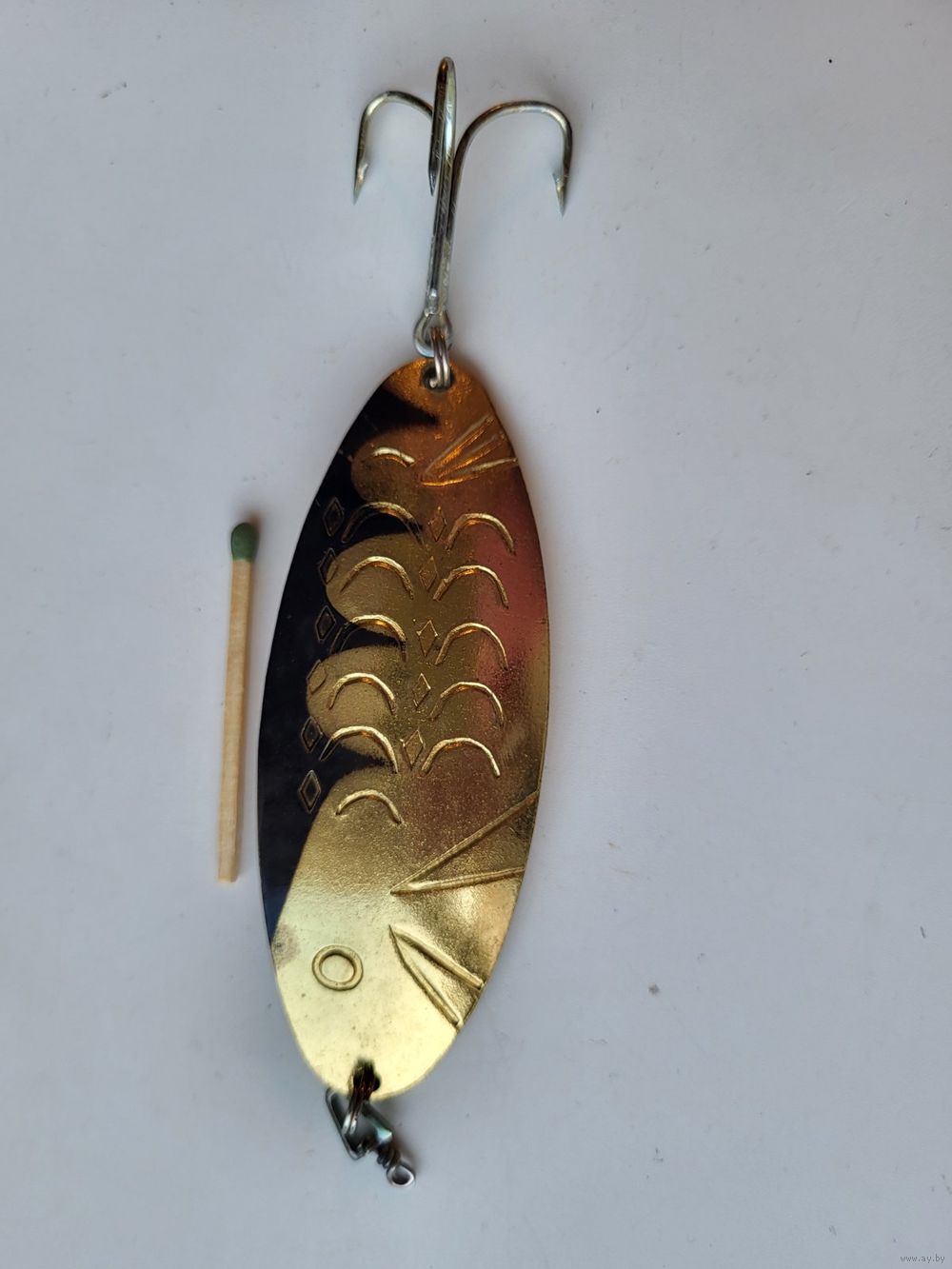 Блесна Катинелис (котёнок) "KATINELIS" Таурагский завод элементов вычислительных машин Литовская СССР. Вес 34г. Не магнитная. Длина 8,5 см, ширина 3 см. Смотрите и другие мои лоты.