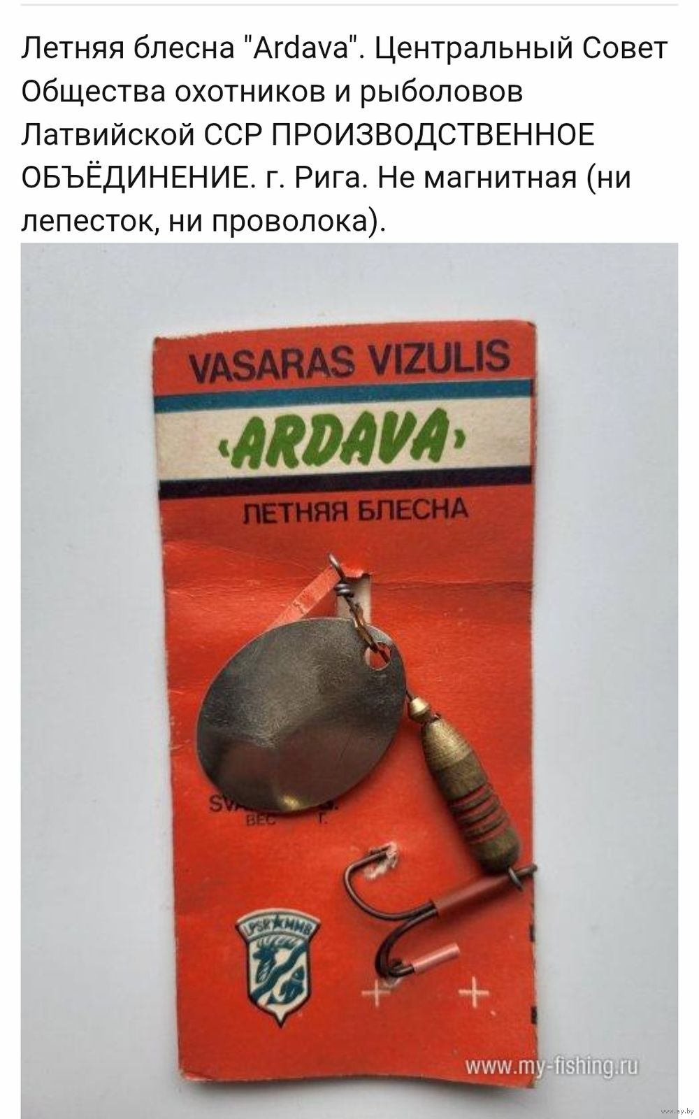 Летняя блесна "Ardava". Центральный Совет Общества охотников и рыболовов Латвийской ССР ПРОИЗВОДСТВЕННОЕ ОБЪЁДИНЕНИЕ. г. Рига. Не магнитная (ни лепесток, ни проволока).