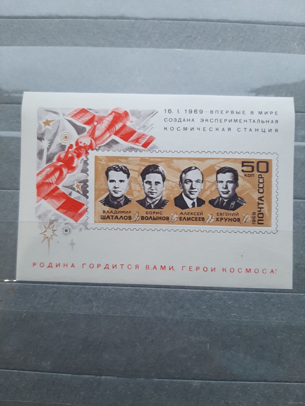 Блок марок СССР 1969. " Первая Экспериментальная космическая станция". С 1 рубля
