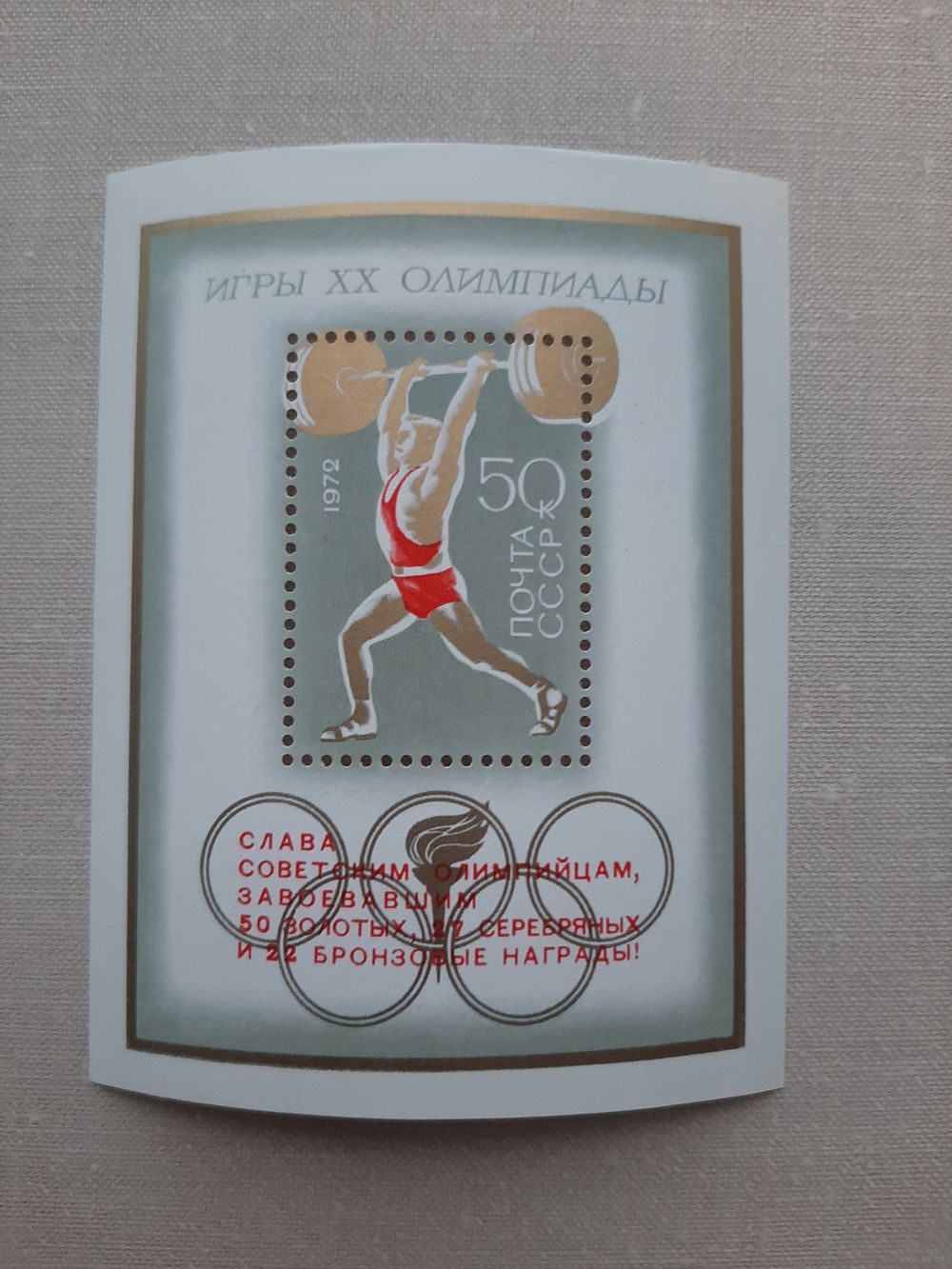 Блок марок СССР 1972. Игры 20 Олимпиады.Надпечатка завоеванных медалей! Тяжелая атлетика. С 1 рубля