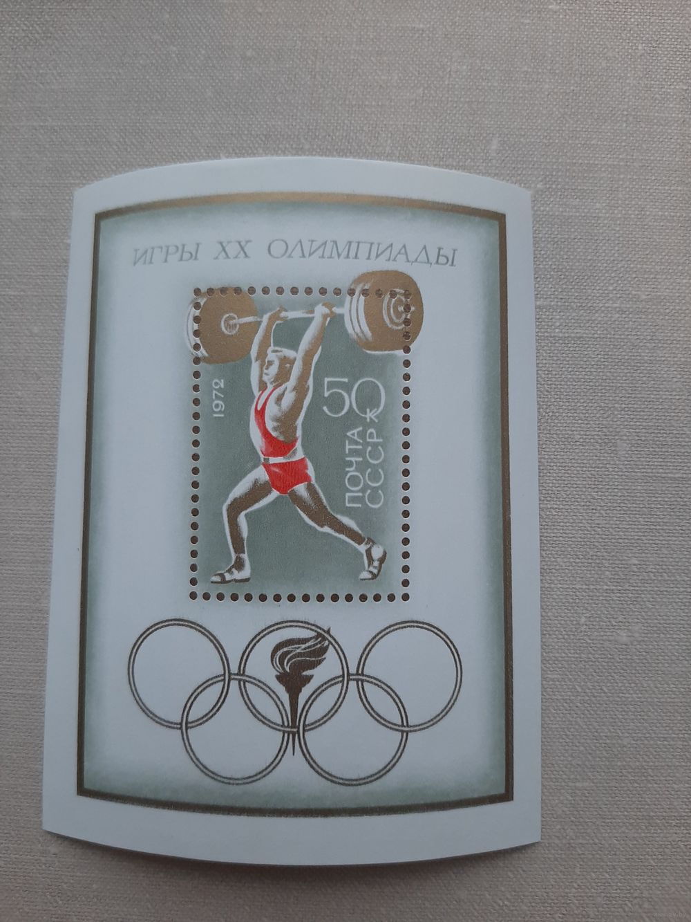 Блок марок СССР 1972. Игры 20 Олимпиады. Тяжелая атлетика. С 1 рубля