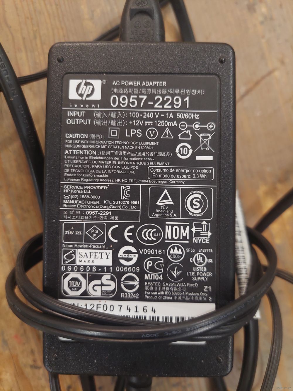 Блок питания 12v 1.25a HP, стандартный разъём.