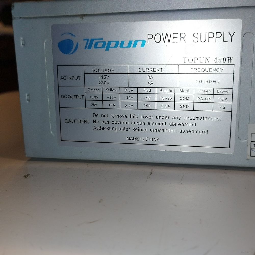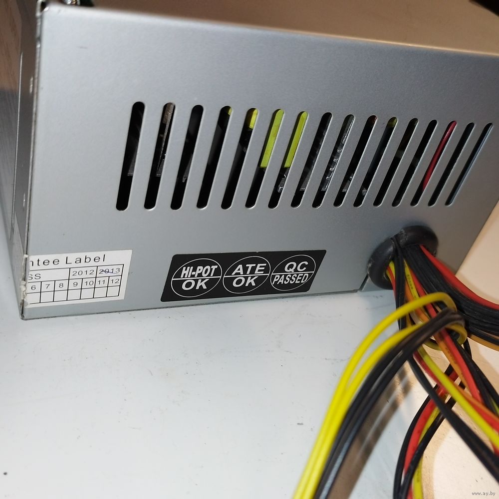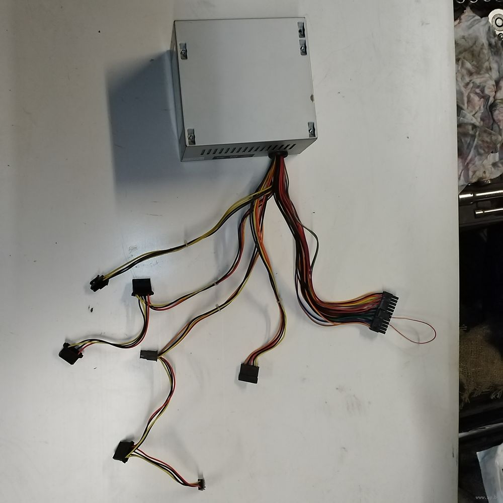 | Б/У- рабочий! Есть дефект одного разьема питания жесткого диска! При замык для проверки черного с зеленым пров - выдает все норм. напражения ! Кулер не гремит! Продут от пыли компресором! | |