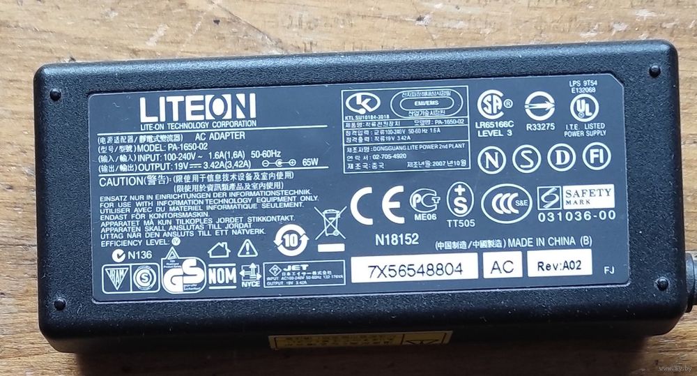 Блок питания 19В 3,42А для ноута Acer нерабочий на запчасти.