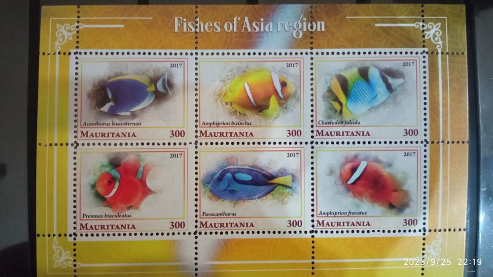 Блок РЫБЫ МОРСКИЕ ОБИТАТЕЛИ ФАУНА MNH