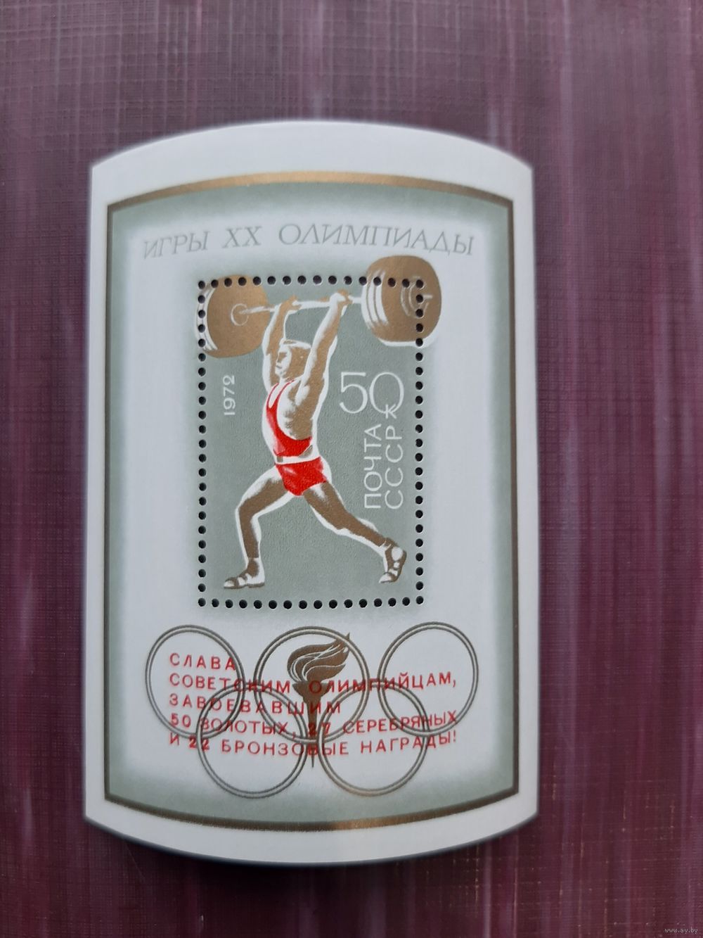 Блок СССР 1972. Игры 20 Олимпиады с надпечаткой выигранных медалей