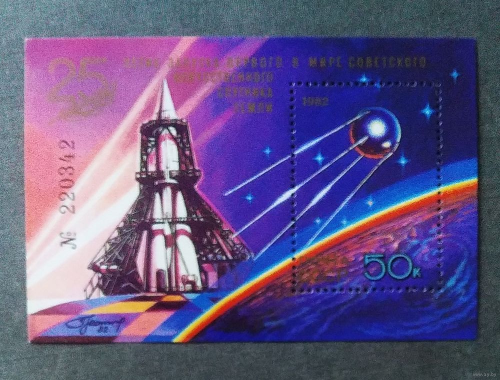 Блок СССР 1982 год 25-летие запуска первого спутника