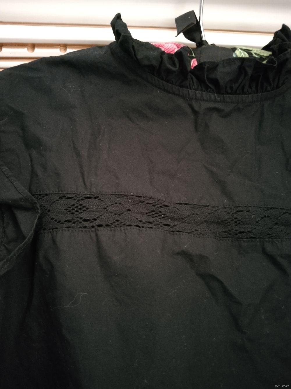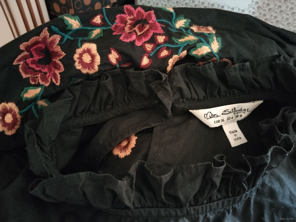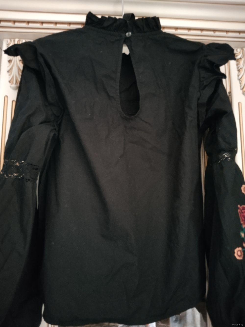 Оригинальная блузка с яркой вышивкой , рюшами и плетёным в ручную кружевом из хлопка на рукавах и груди, обтянутыми тканью пуговичками на вышитых манжетах.