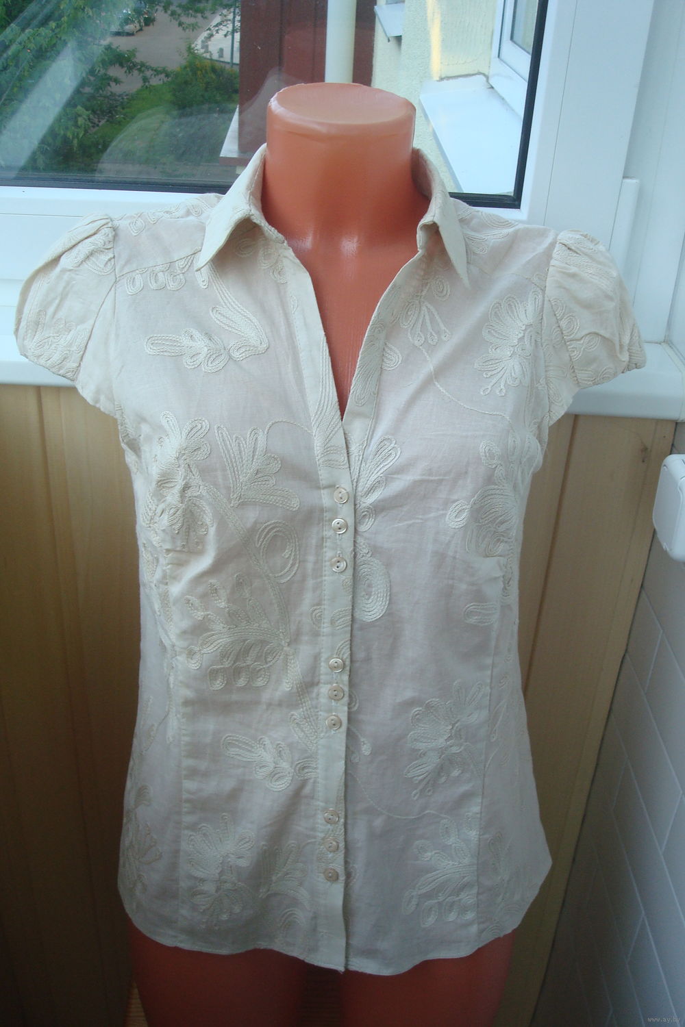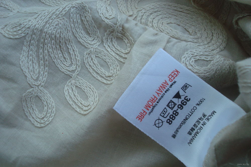 Очень интересная фактура ткани: на тонкой ткани типа батист выложены узоры тесьмой, очень красиво и необычно. Состав ткани - 100% высококачественный хлопок.
