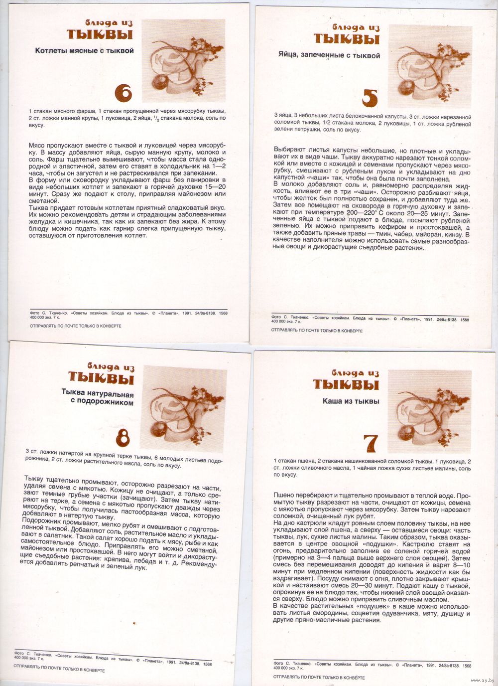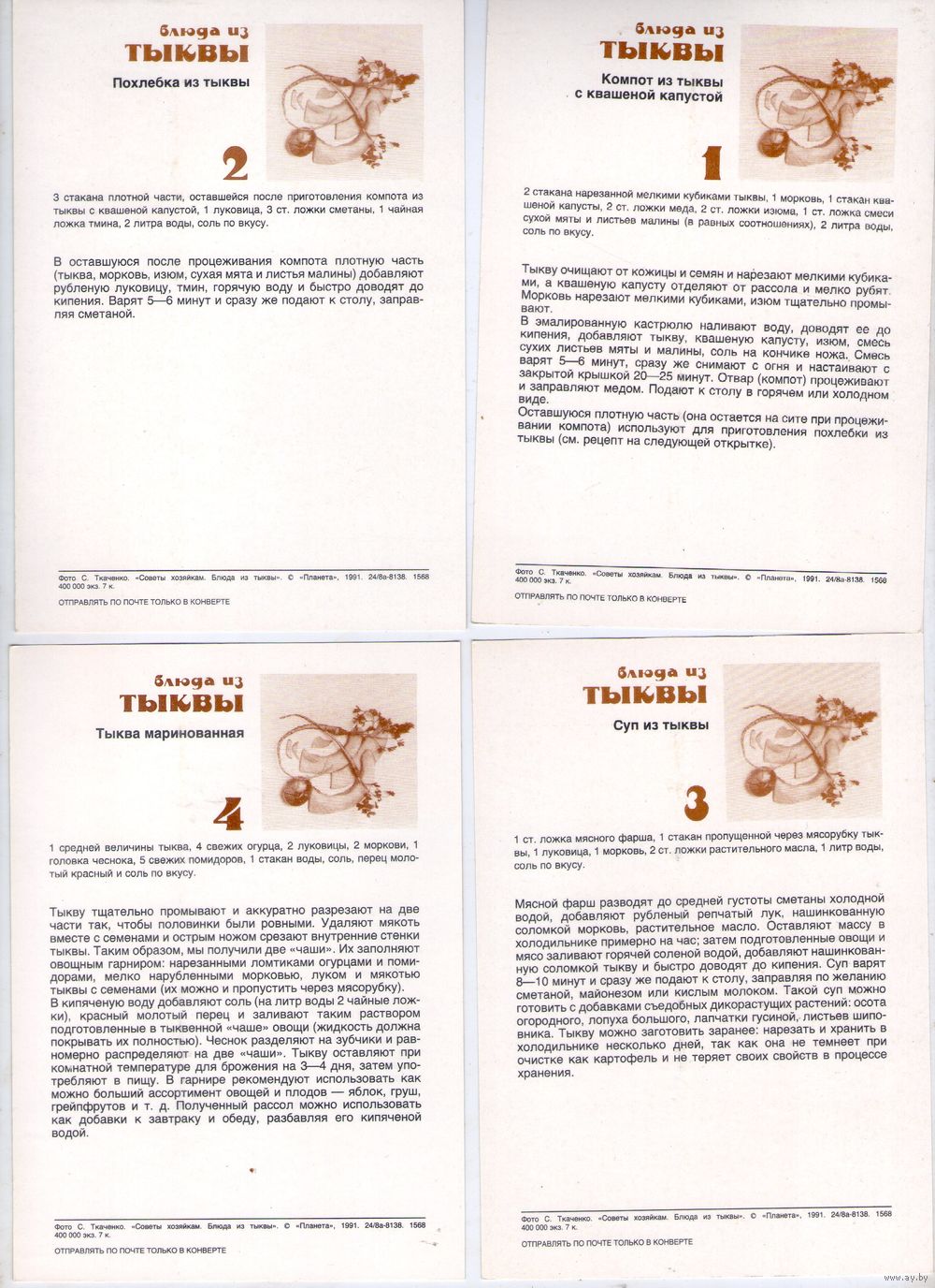 Блюда из тыквы. Открытки 1991г. Комплект 18 шт
