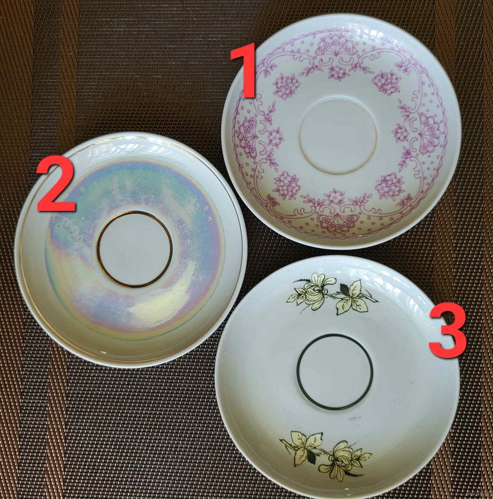 Блюдца кофейные 12 см, 3 шт. разные, Минский фарфоро-фаянсовый завод, все имеют красное клеймо 1 сорт.
