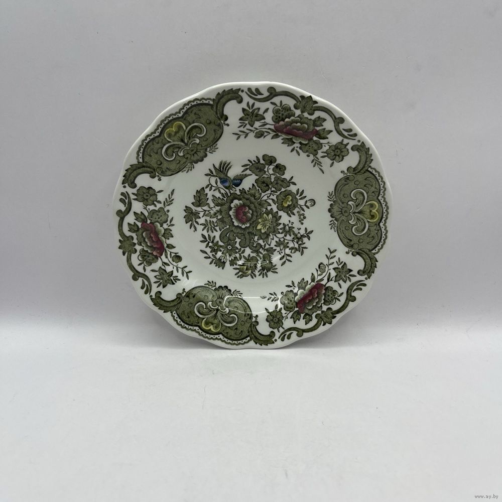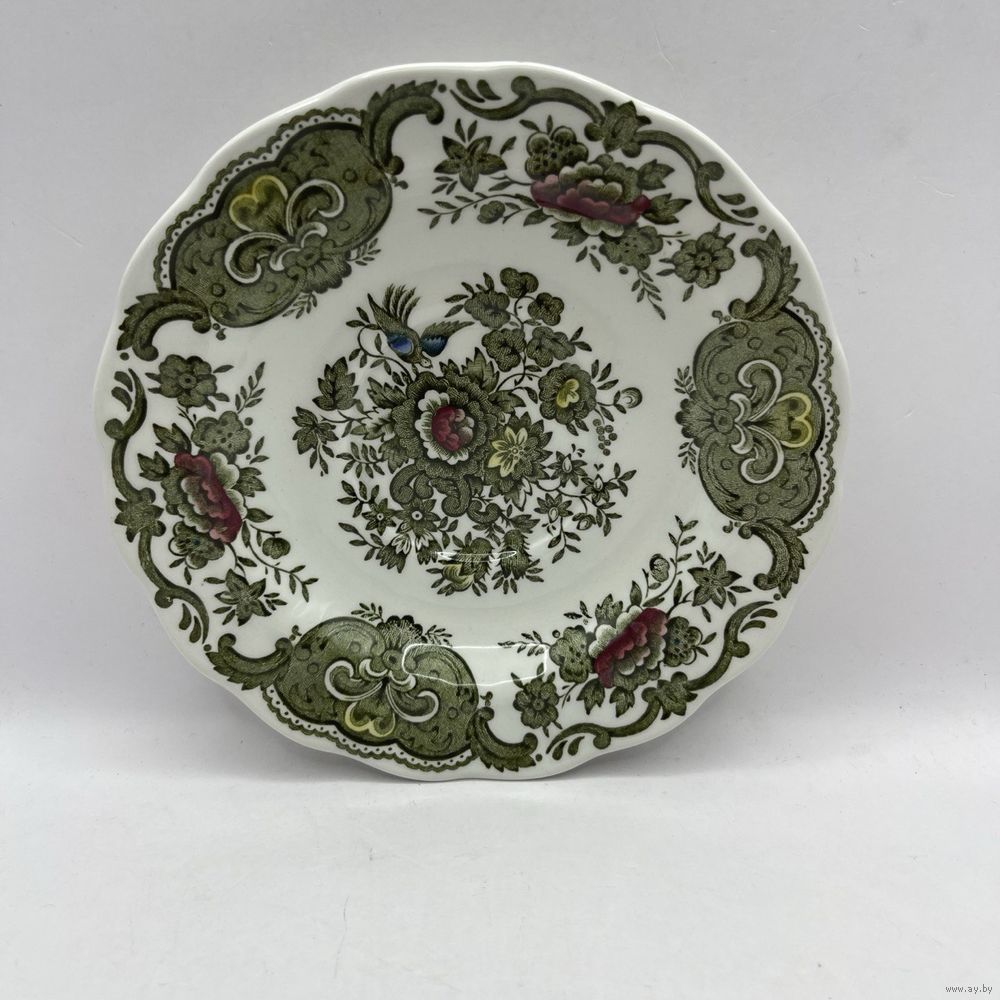 Винтажное фаянсовое блюдце Ridgway Windsor (Staffordshire) с ручным подглазурным изображением птиц в цветах. Англия. 1960-е г.г. Подглазурное клеймо. Диаметр 14,5 см. Подходит для мытья в посудомоечной машине. На обратной стороне несовершенства на глазури и следы от щипцов для обжига, как следствие ручной работы, не является дефектом.