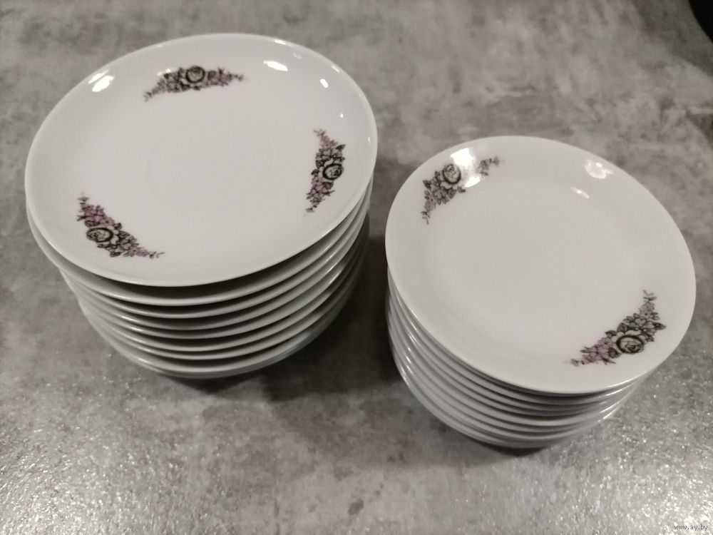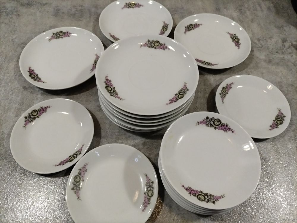 Без следов использования, 10 блюдец и 11 мини тарелочек по 3 руб. за предмет. Размеры на фото, любая почта.