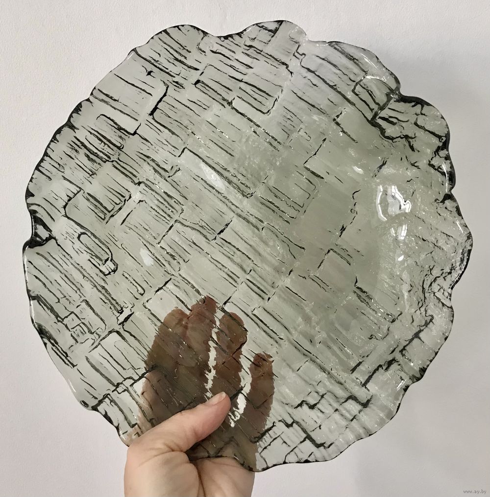 Блюдо из цветного стекла в гутной технике, прокатное моллирование автор В.Мурахвер. Неман 1970-е гг. Высота от 3,5 до 4-х см., диаметр 24см. Тяжеленькое. Состояние хорошее.
