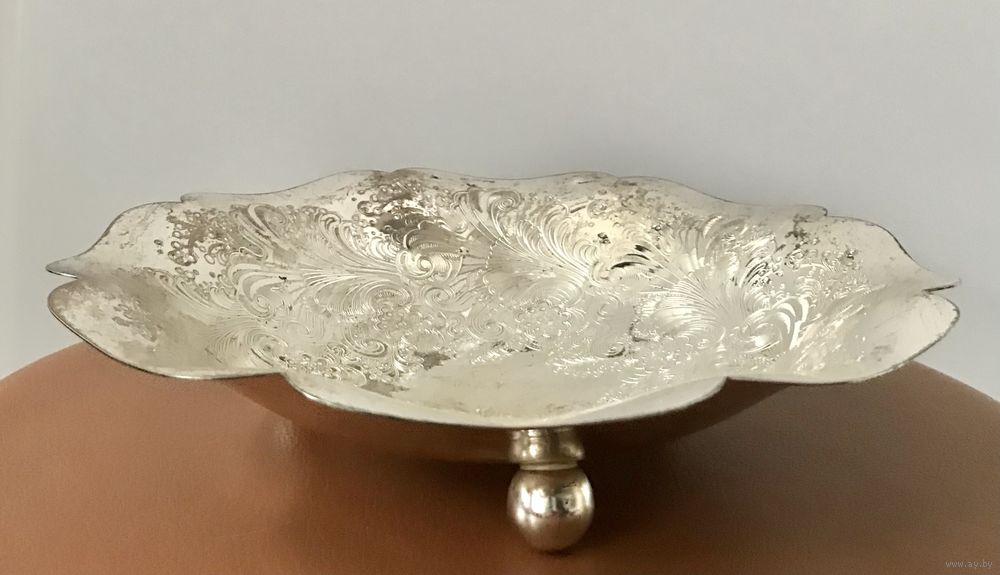 Блюдо на ножках из металла с серебрением, WMF Германия 2-я пол. XX в. Высота 5,5см., диаметр 25см. Состояние хорошее.