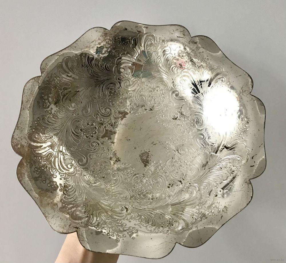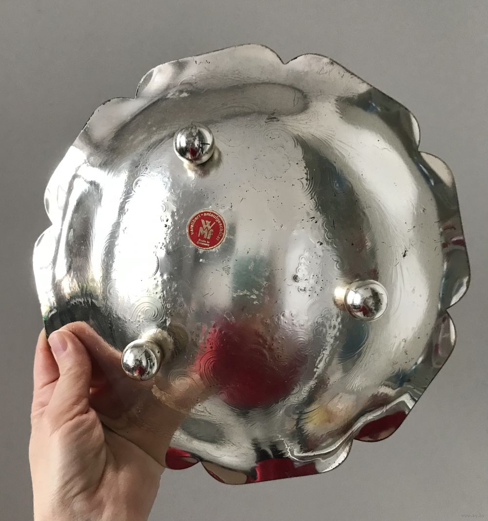 Блюдо на ножках из металла с серебрением, WMF Германия 2-я пол. XX в. Высота 5,5см., диаметр 25см. Состояние хорошее.