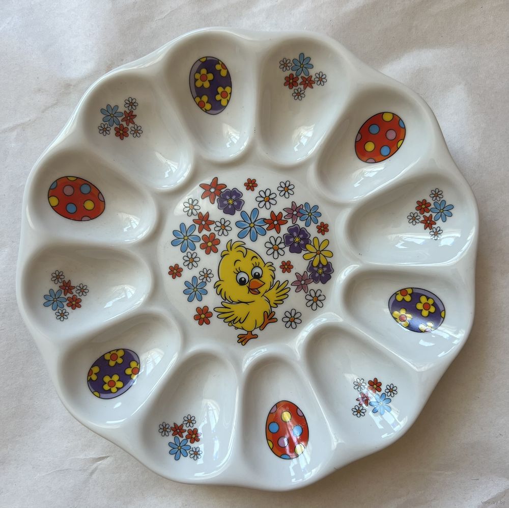 Блюдо для фаршированных яиц 220 мм, производство Добрушский Фарфоровый Завод (ДФЗ).  Продавец не является экспертом, состояние лотов всегда оценивайте самостоятельно, по представленным фотографиям, после выигрышной ставки  вы получите  предмет, изображенный на фотографии.  Делая ставку вы принимаете условия продажи лота, установленные продавцом. Пересылку оплачивает покупатель. Выход на связь в течение 3 дней. Оплата лотов в течение 5 дней. Отправка лотов в течение 5 дней после оплаты и предварительной договорённости.