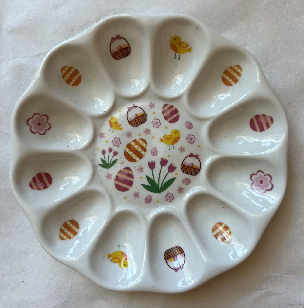 Блюдо для фаршированных яиц 220 мм, производство Добрушский Фарфоровый Завод (ДФЗ).  Продавец не является экспертом, состояние лотов всегда оценивайте самостоятельно, по представленным фотографиям, после выигрышной ставки  вы получите  предмет, изображенный на фотографии.  Делая ставку вы принимаете условия продажи лота, установленные продавцом. Пересылку оплачивает покупатель. Выход на связь в течение 3 дней. Оплата лотов в течение 5 дней. Отправка лотов в течение 5 дней после оплаты и предварительной договорённости.
