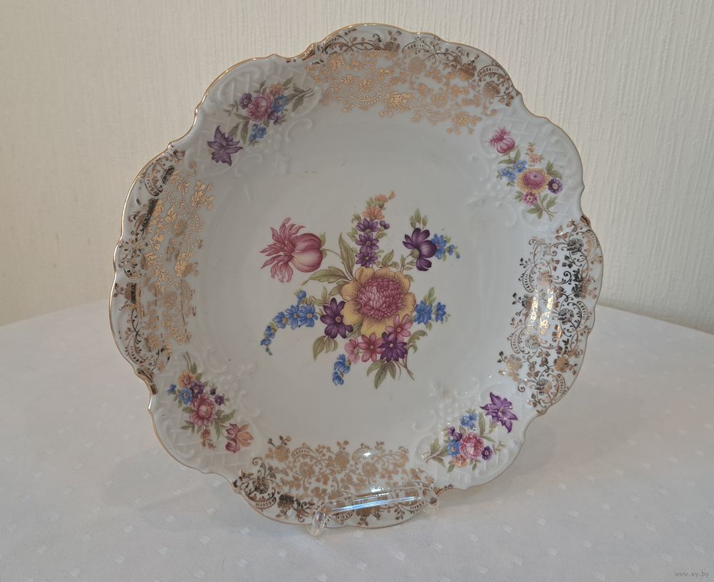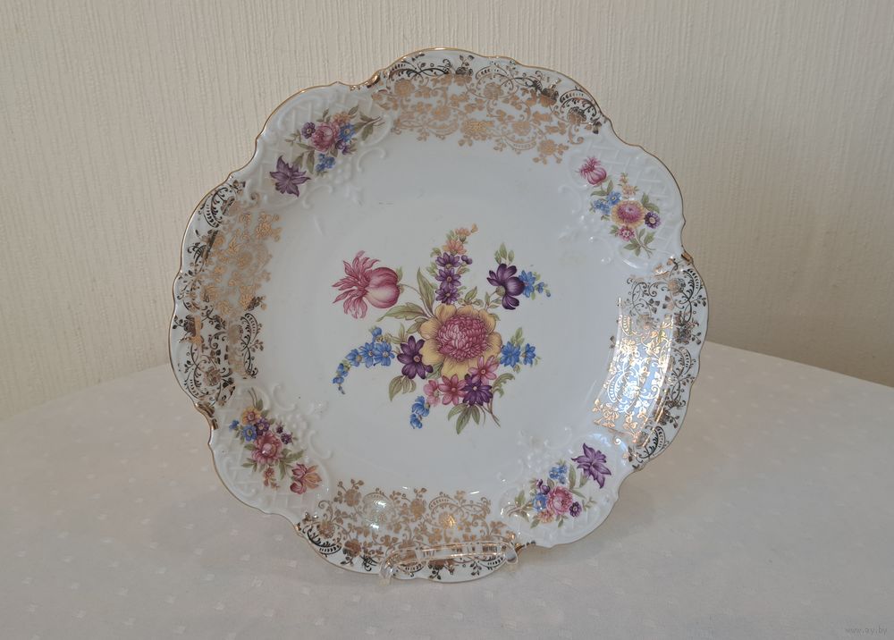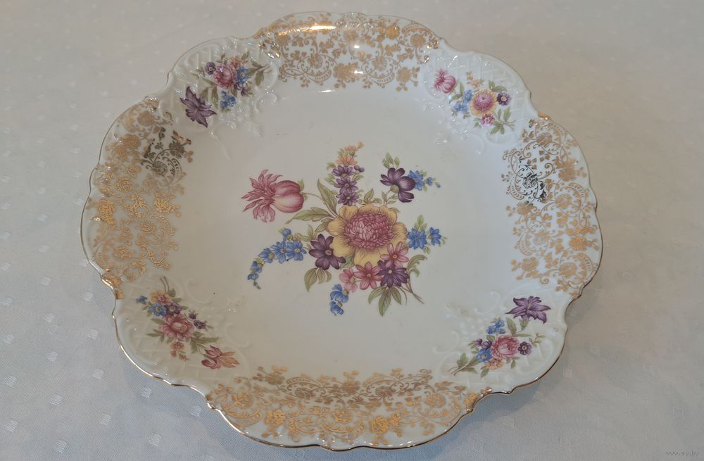 Блюдо фарфор слоновая кость позолота Oscar Schaller Bavaria 50-е годы, диаметр 29 см., высота 4 см.