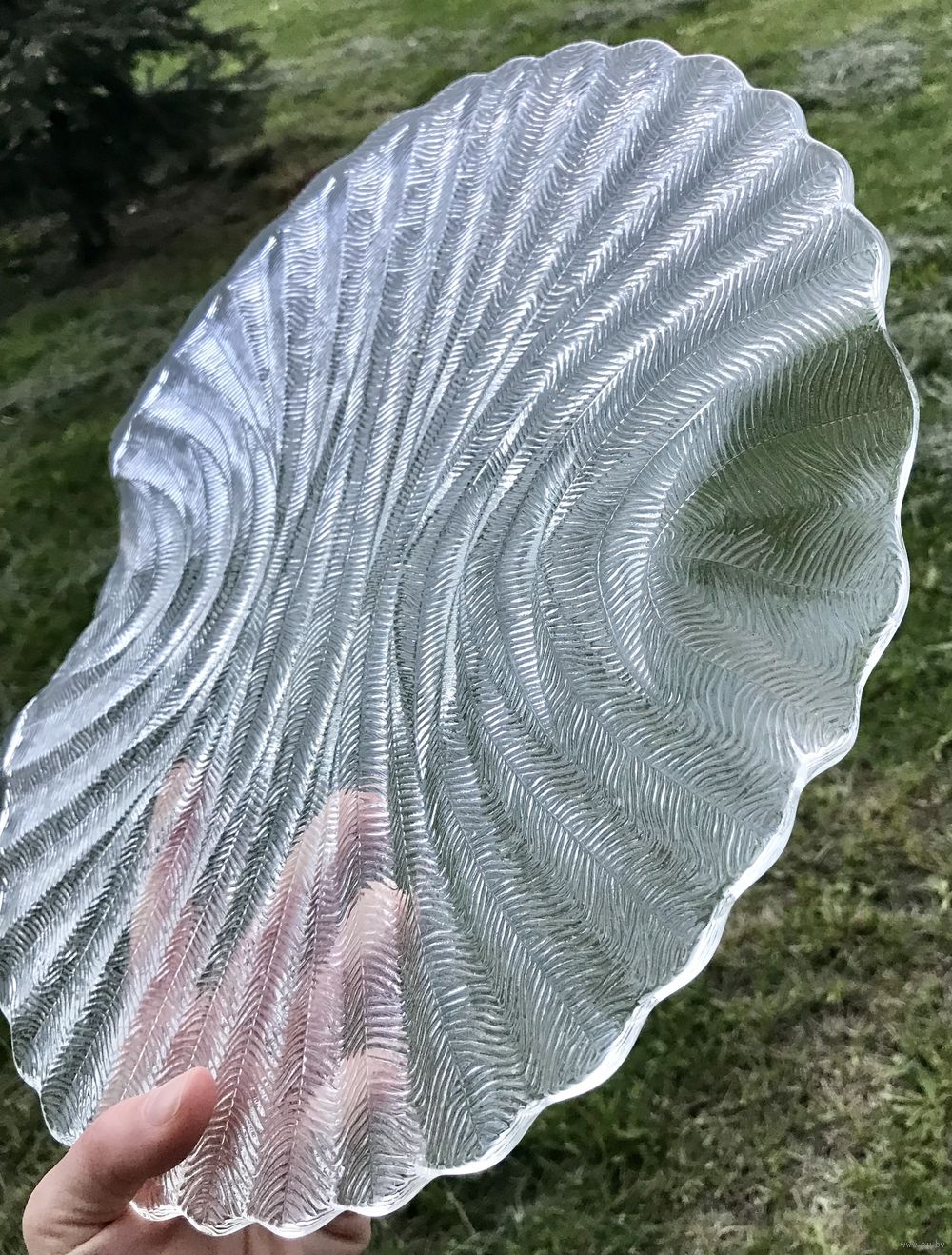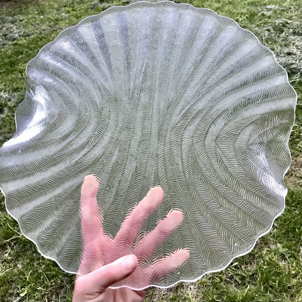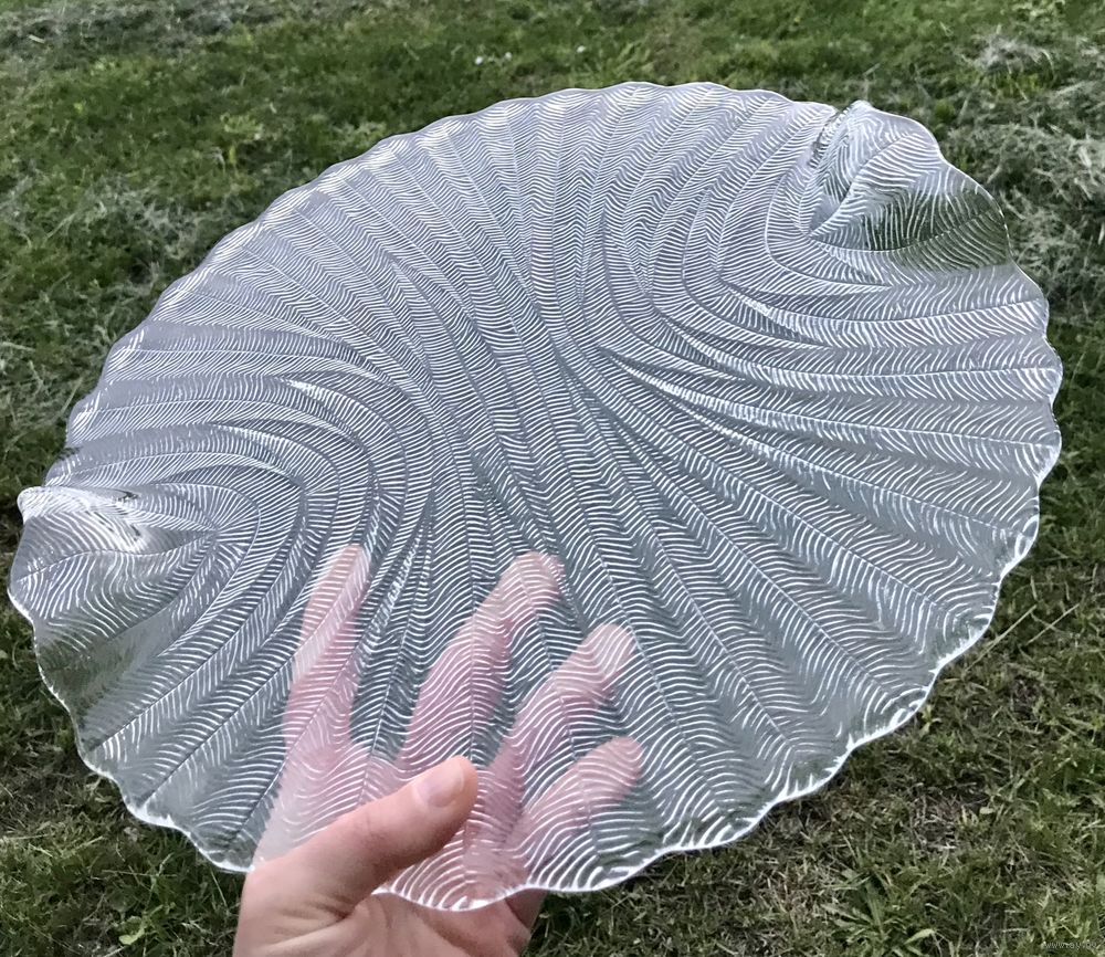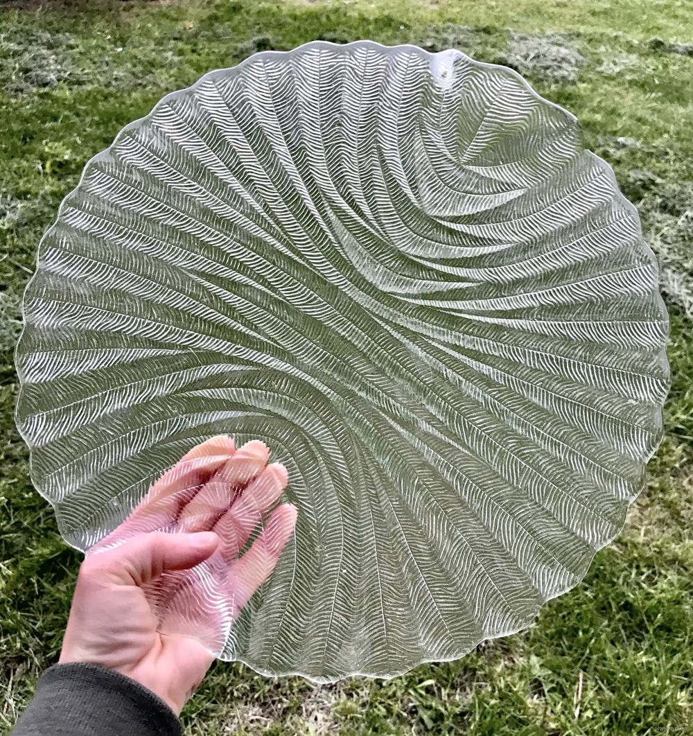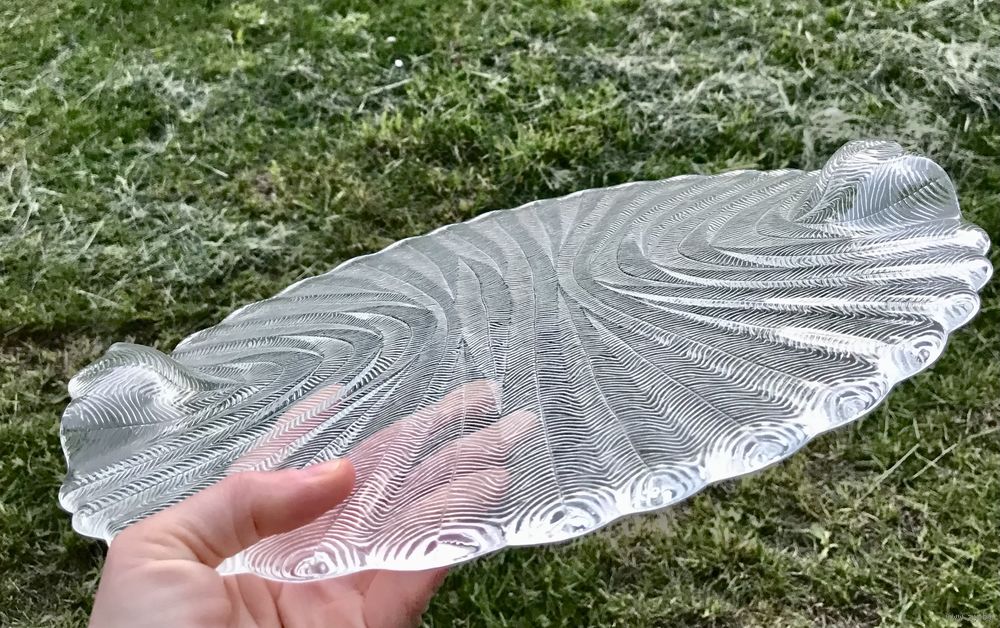 Блюдо (поднос) из прессованного стекла . Чехия 70-80-е гг. Автор Pavel Panek. Серия «Папоротник». Диаметр 33см. Состояние хорошее.