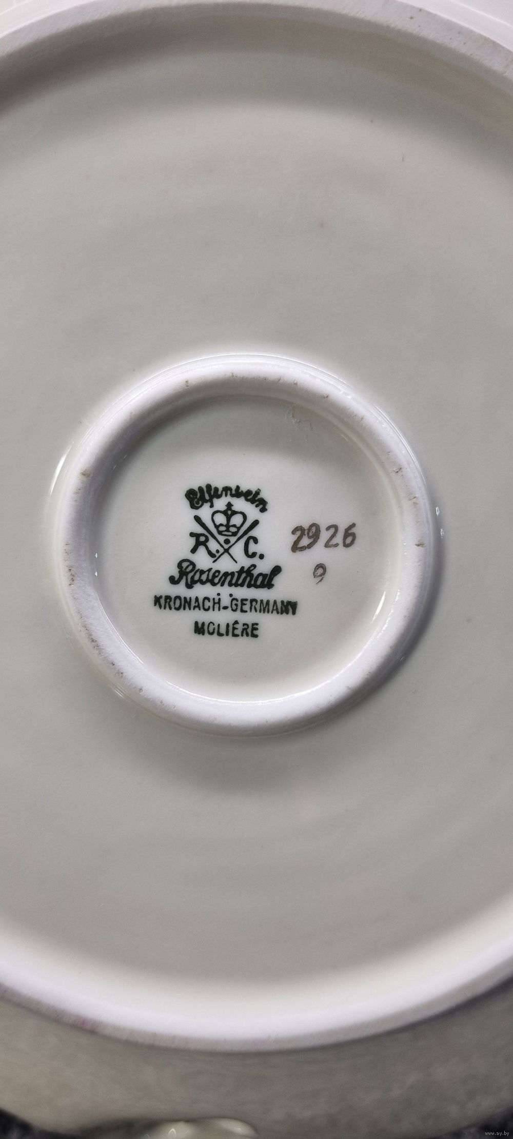 Фарфоровое изделие Rosenthal Moliere Kronach-Germany с изображенным клеймом выпускалось примерно в период с 1896 по 1933 год. Более ранний период: 1896–1906 гг.