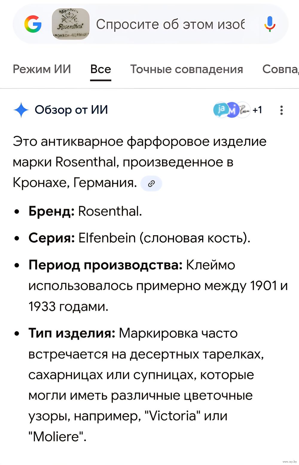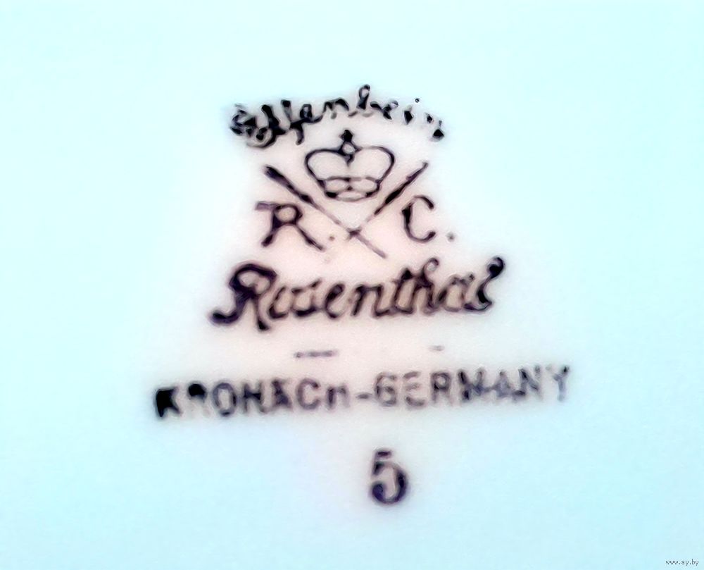 Блюдо с ручками фарфор слоновая кость R x C Rosenthal Kronach Germany диаметр 30 см., высота 3 см., данное клеймо использовалось 1901 - 1933 гг.