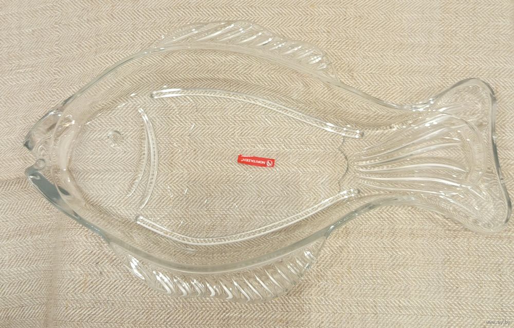 Красивое большое блюдо из толстого стекла, для рыбной нарезки, салатов, украсит ваш стол, новое, в использовании не было, размер 37х22