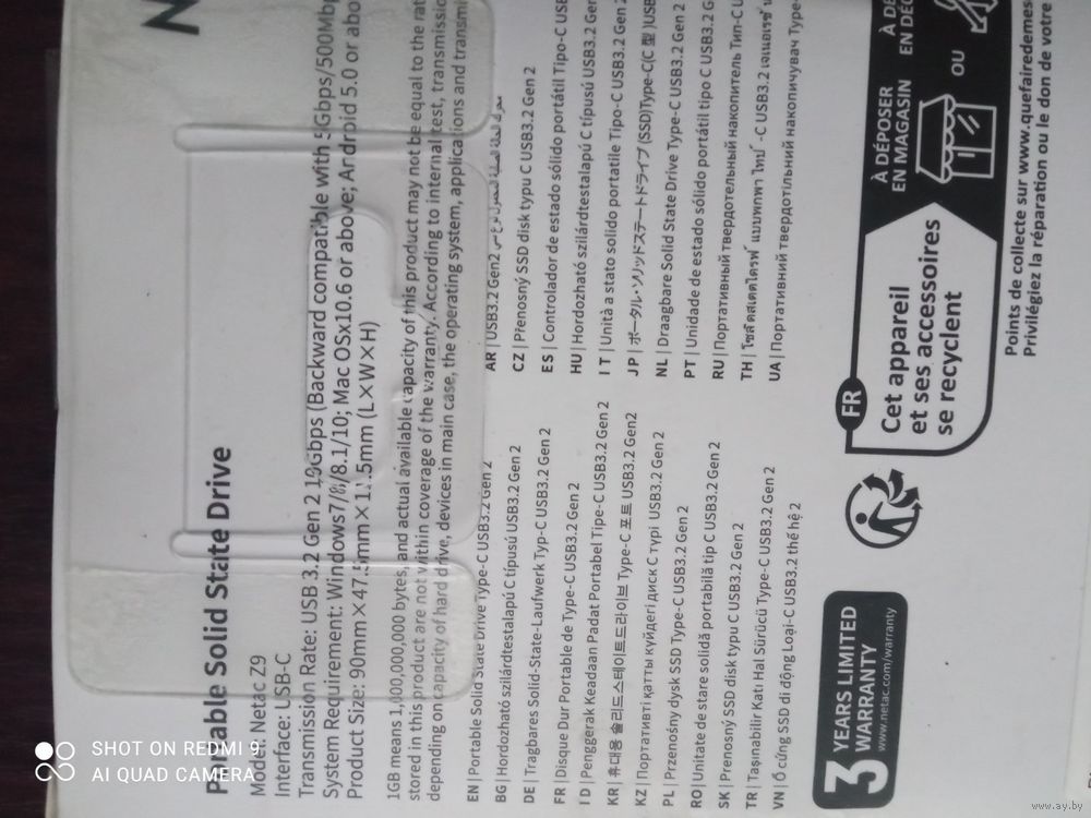 Продам внешний SSD накопитель Netac Z9 на 2ТВ.,новый в упаковке,упаковка не вскрывалась.