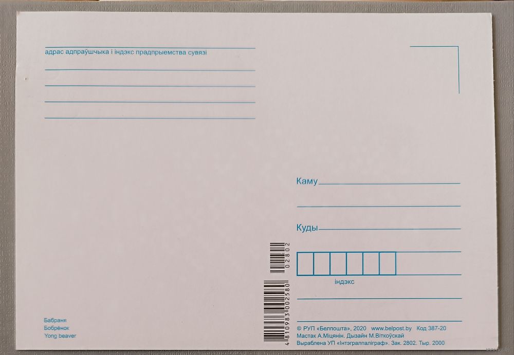 Бобренок. Из серии "Детская филателия". Открытка
