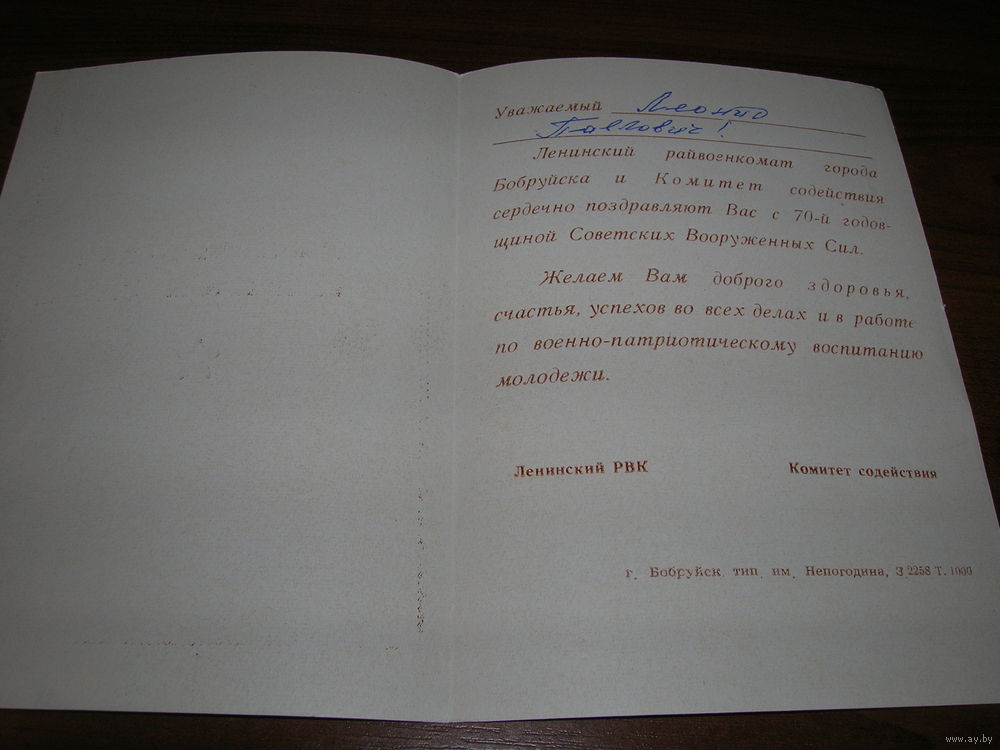 Бобруйск 1988 год Поздравление с 70-й годовщиной советских вооруженных Сил Ленинский РВК