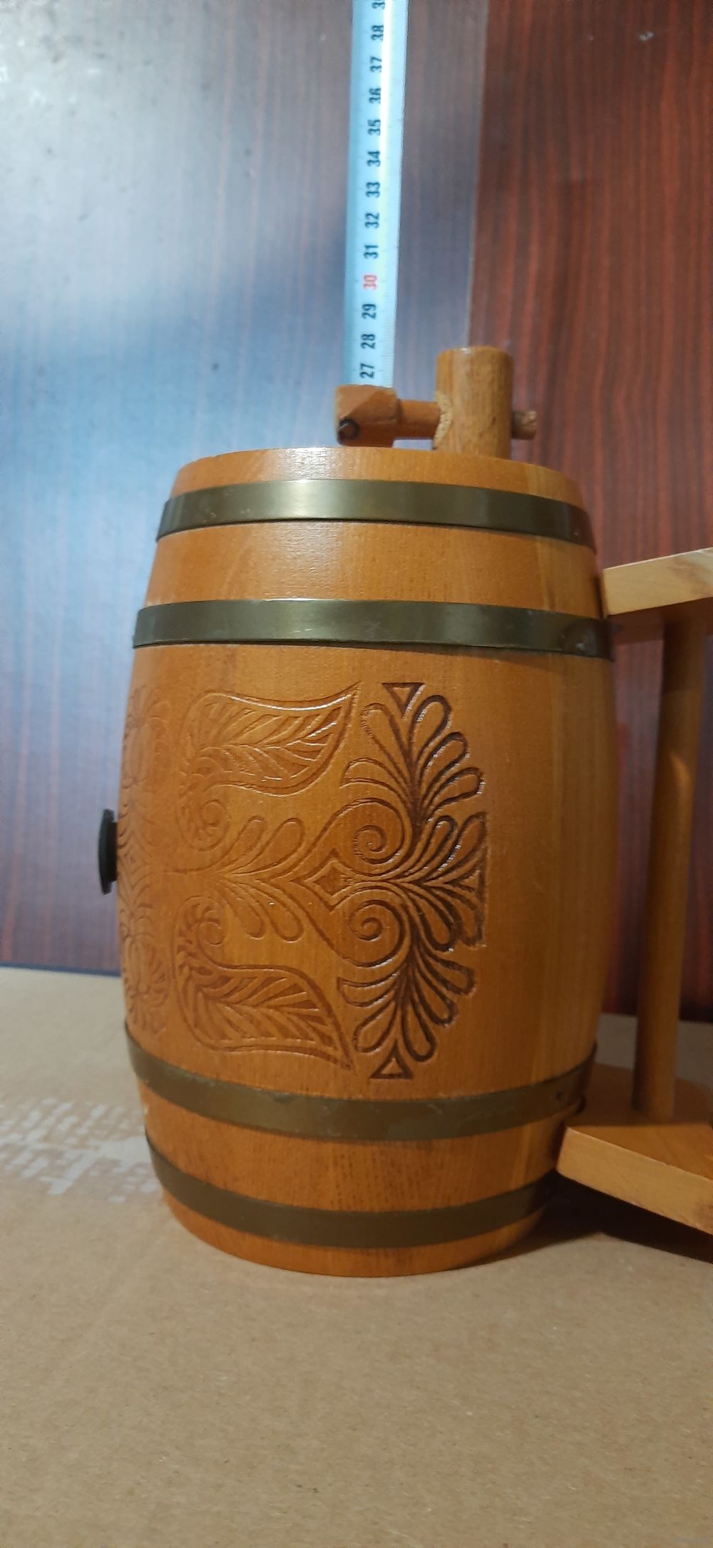 Красивый бочонок,крышка утеряна , продаётся как антураж для интеръера.