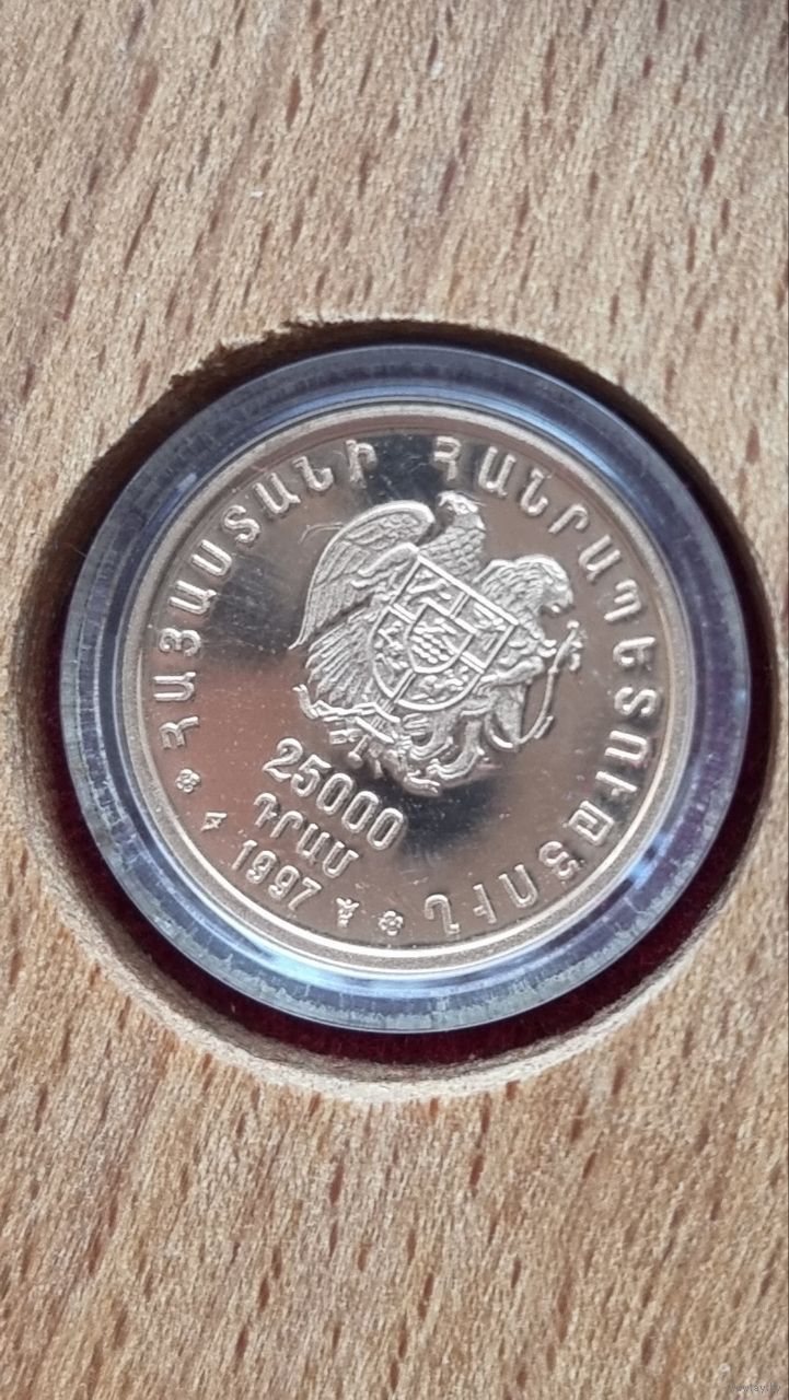 Монета идет в кастомном футляре из дерева, сертификата нет, т.к. это инвестиционная монета, продавали их на тот момент без сертификата.