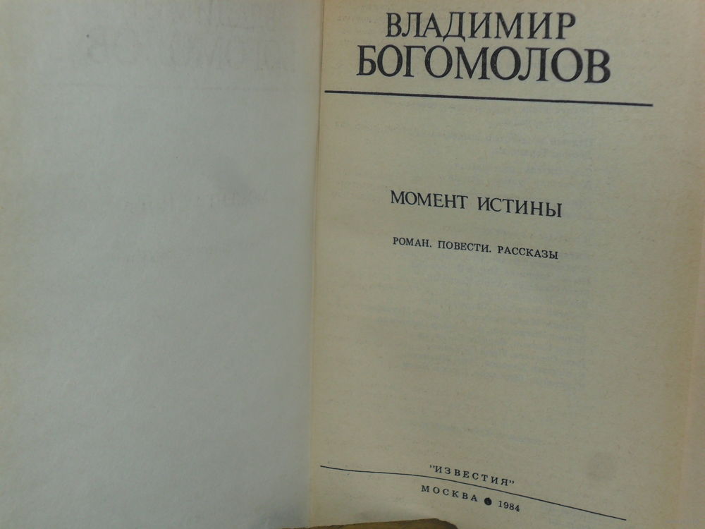 Роман «Момент истины» («В августе сорок четвертого…»), повести «Иван», «Зося», рассказы, вошедшие в эту книгу, хорошо знакомы читателям. Они повествуют о мужестве и стойкости советских людей в годы войны, о незаживающей боли в сердцах людей, потерявших на войне своих близких, о высоком профессионализме бойцов «Смерша», выполнявших свой долг.