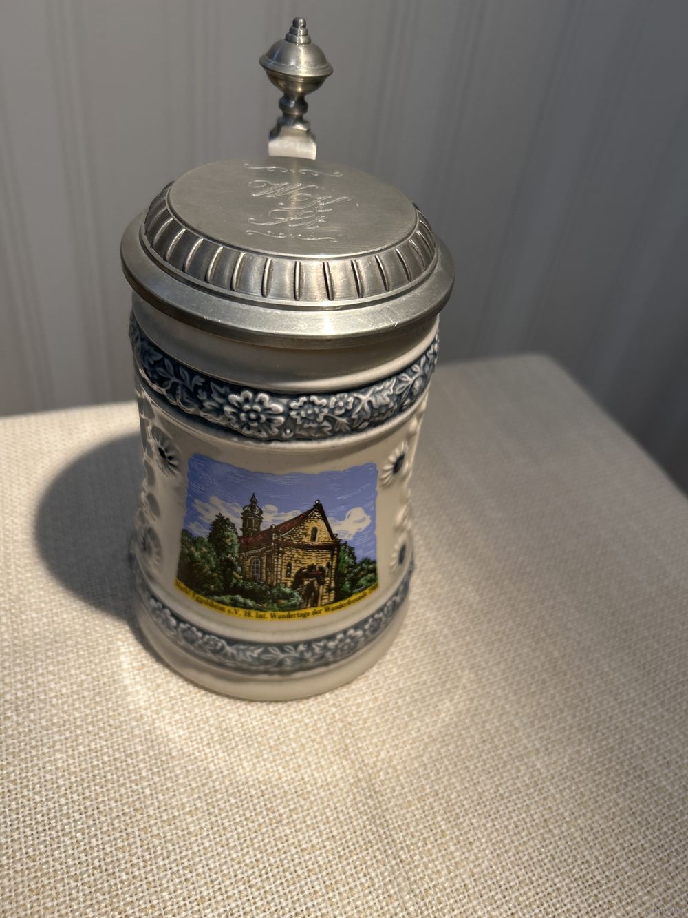 Красивый, добротный,Керамический пивной бокал из Германии с крышкой. Обьем 500 мл.