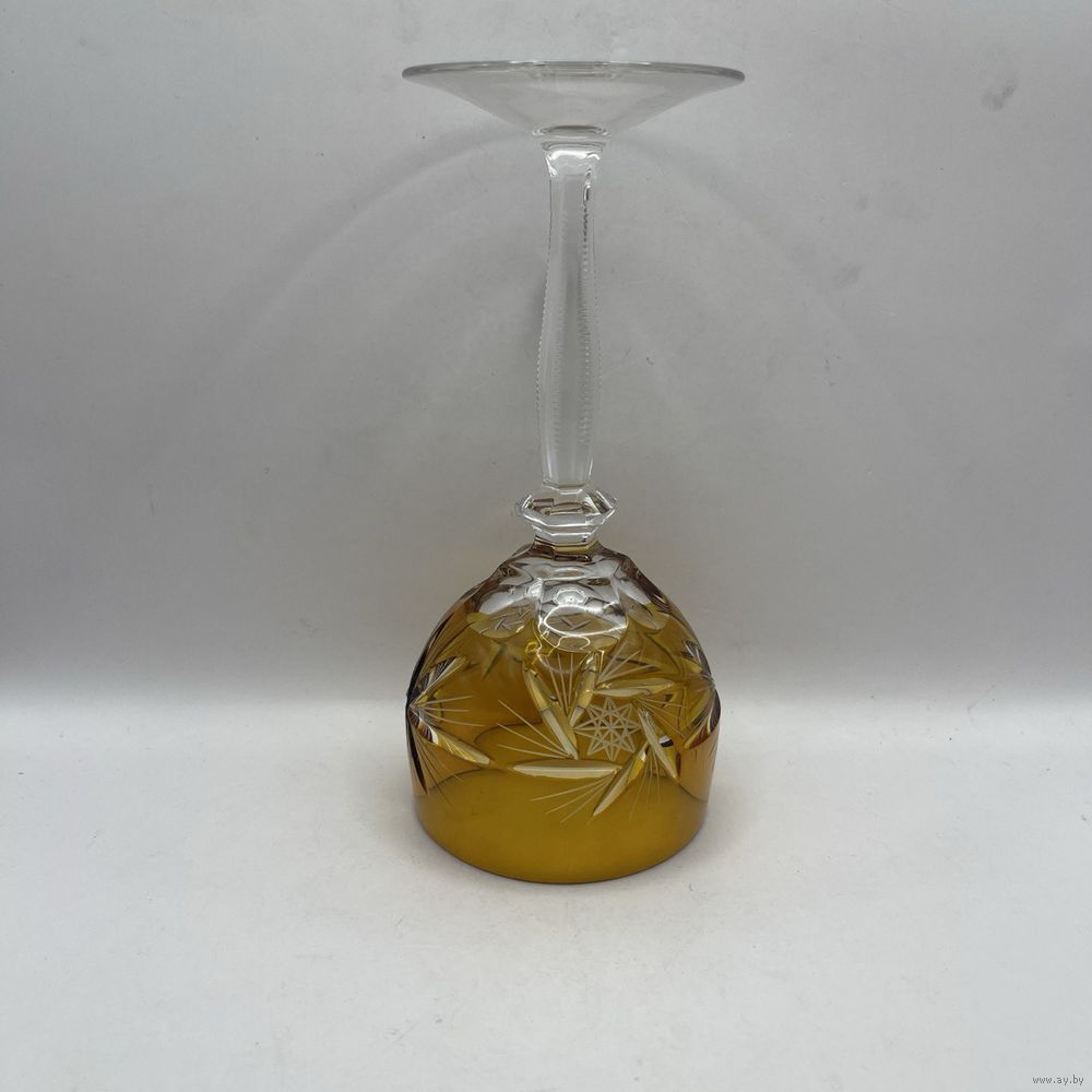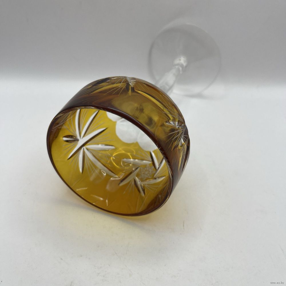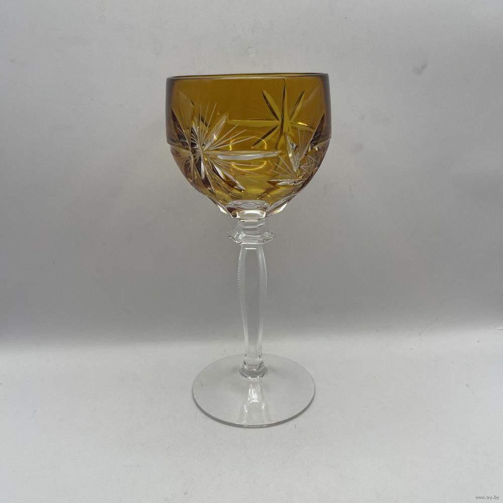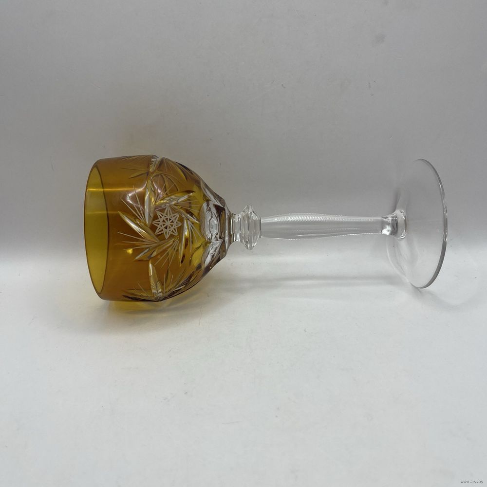 Антикварный бокал для вина на высокой ножке от Аnna Hutte. Накладной двухслойный хрусталь ручной шлифовки, огранки и нарезки в технике cut-to-clear. Германия. 1950-е г.г. Высота 18 см, объем 150 мл.