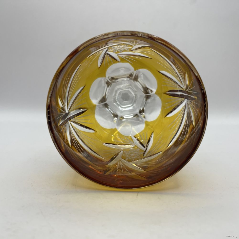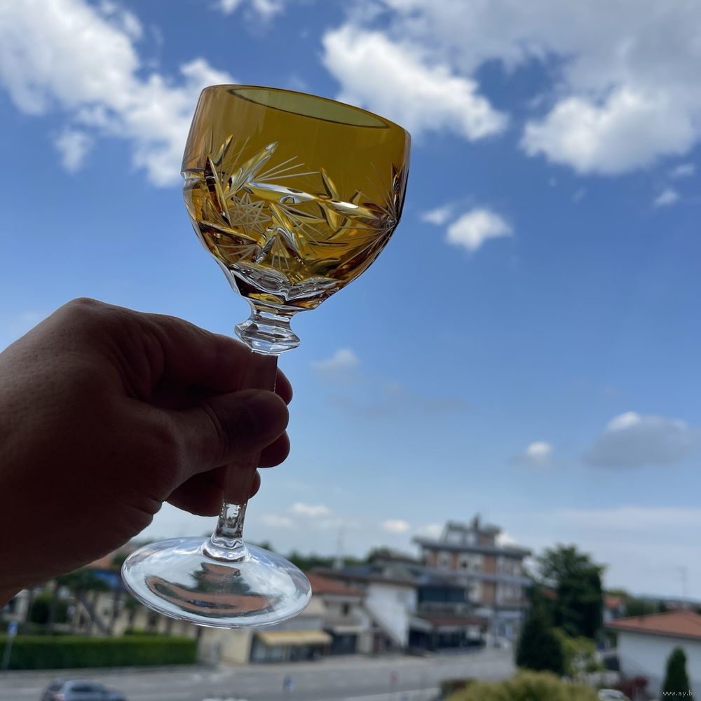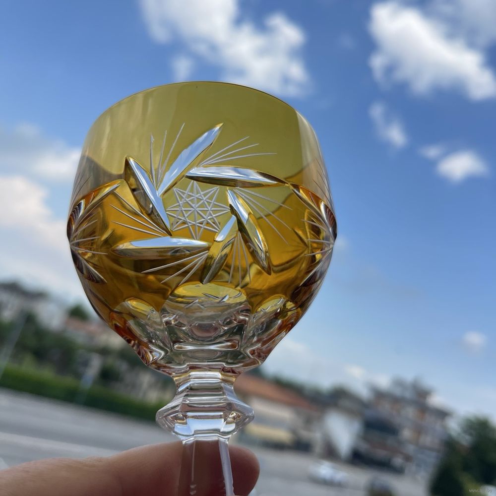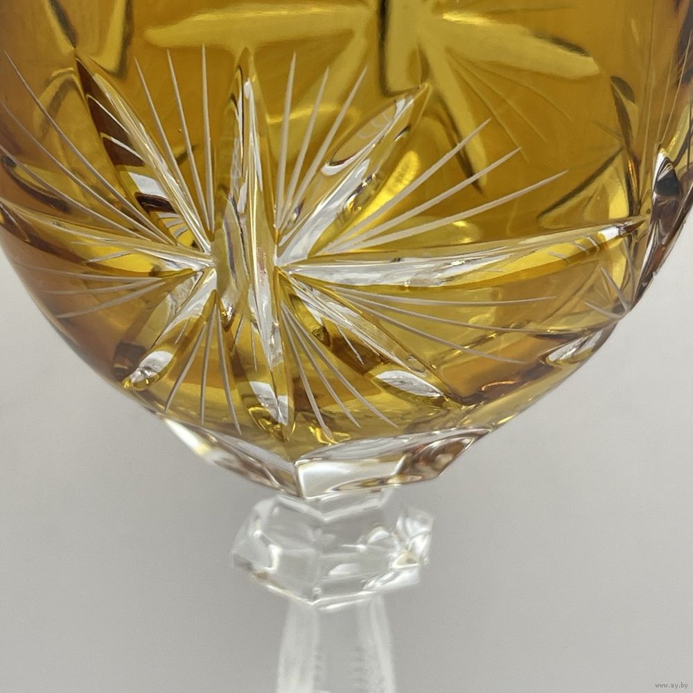 Антикварный бокал для вина на высокой ножке от Аnna Hutte. Накладной двухслойный хрусталь ручной шлифовки, огранки и нарезки в технике cut-to-clear. Германия. 1950-е г.г. Высота 18 см, объем 150 мл.