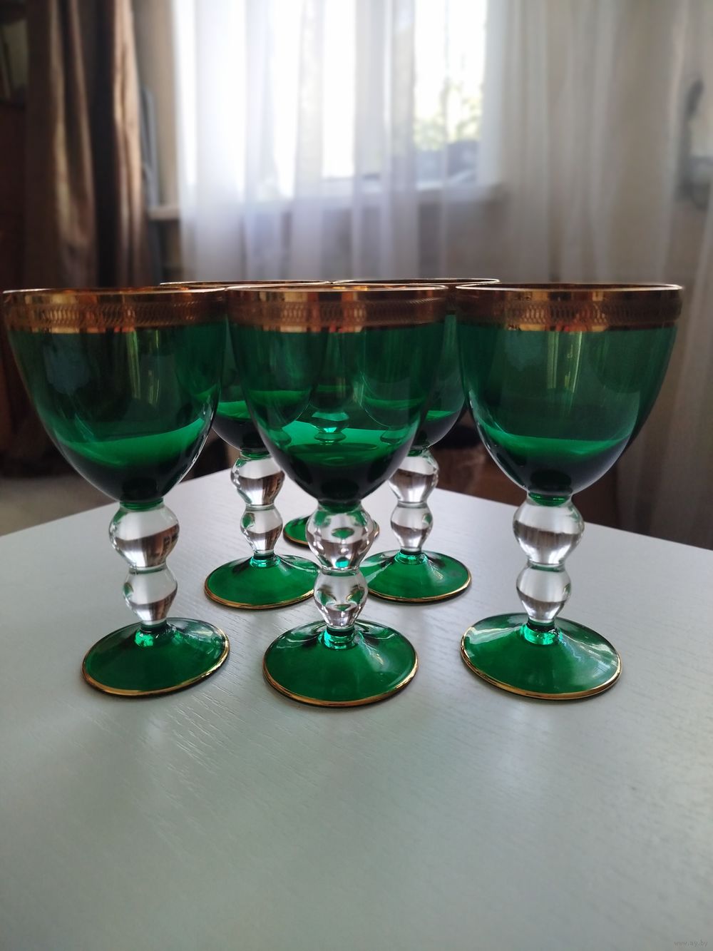 Бокалы редкие Богемия, Чехословакия, из зелёного хрустального стекла, в идеальном состоянии. Предлагайте цену