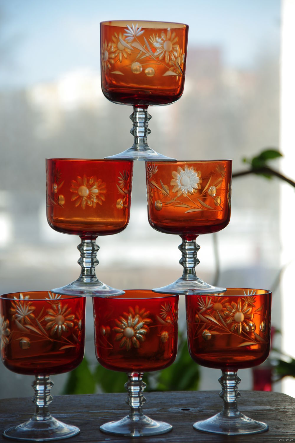 Бокалы красное стекло 6 шт . ( все целые ) высота 12 см , объем 200 мл