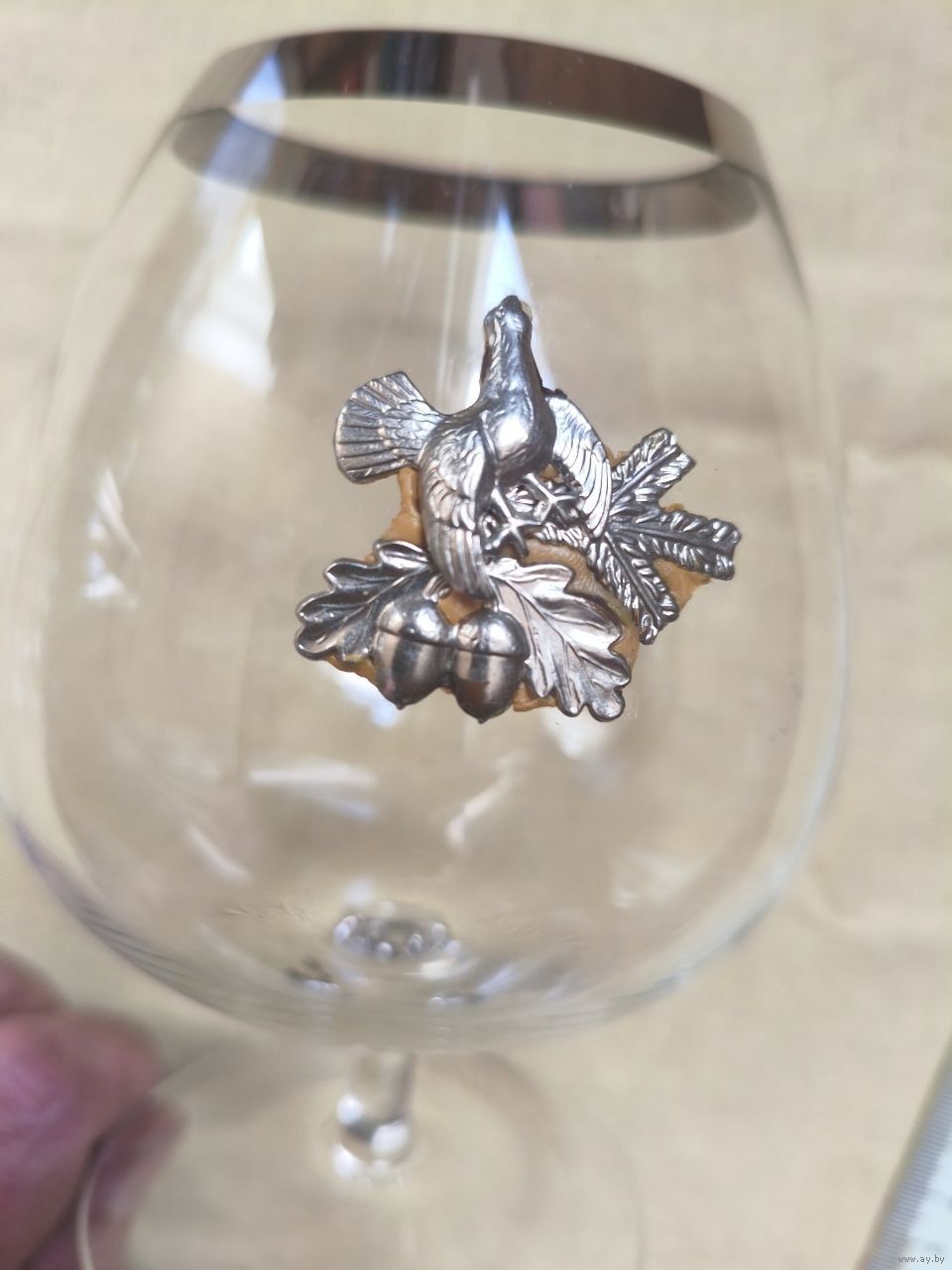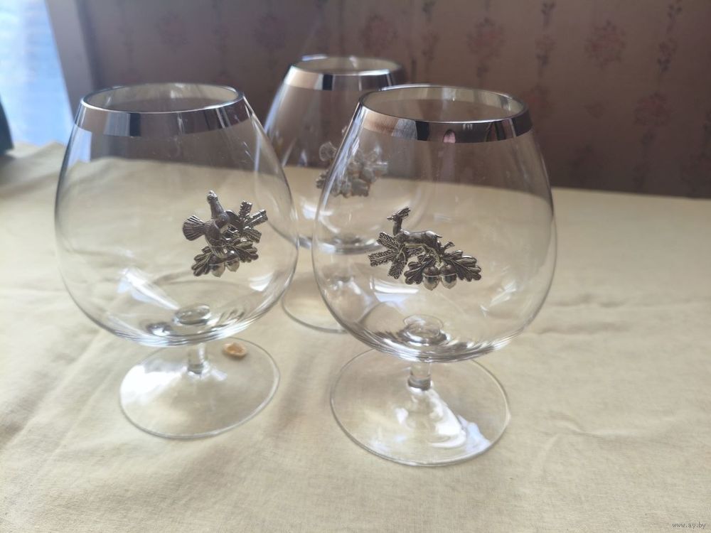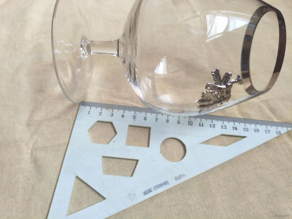 Бокалы с металлическими наклейками. 2 В хорошем состоянии, третий - накладка приклеена на что-то вроде пластилина (последние 2 фото).