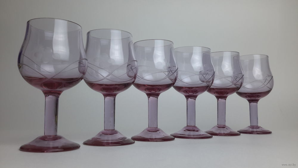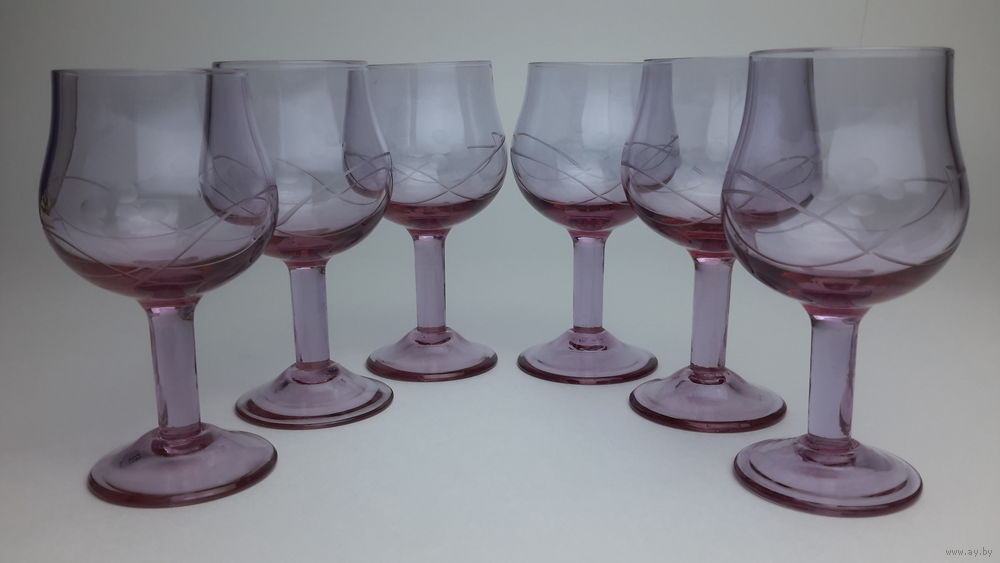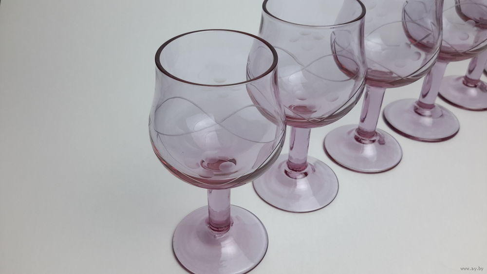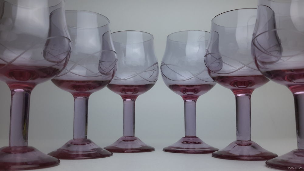 Бокалы вишневое стекло СССР 1960-е годы алмазная грань высота 10.5см 6шт состояние идеальное 225р торг
