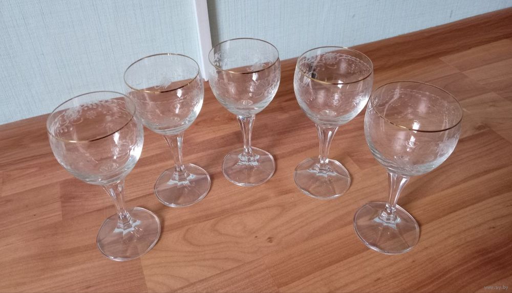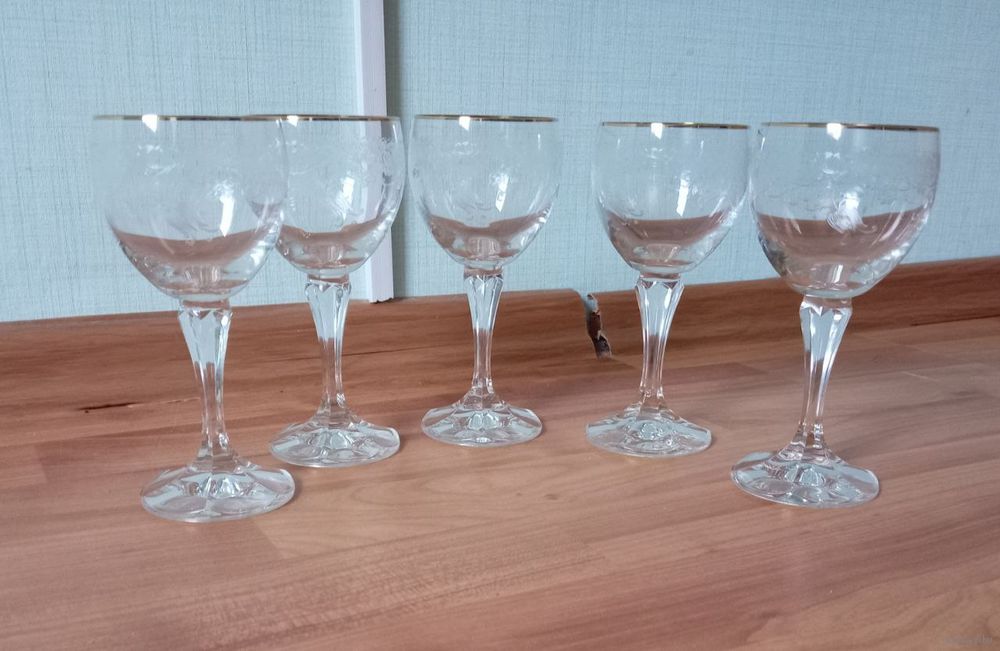 Бокалы высокие 5 шт 15,5 см как новые резьба по стеклу