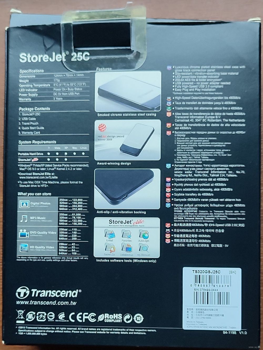 HDD-box для жёсткого диска Transcend 2.5". Самого веника нету, только корпус и кожаный чехол в коробке с доками