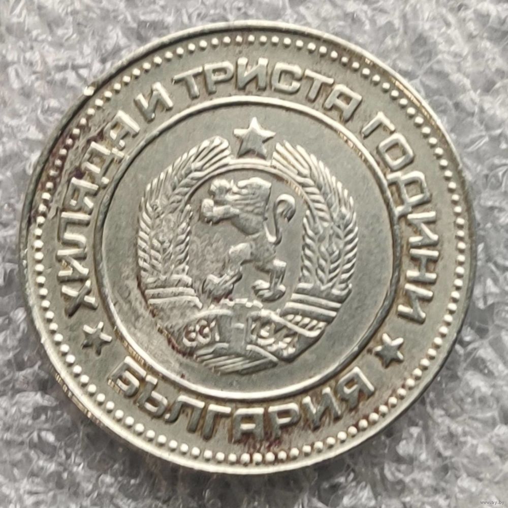 Номер KM # 114 Страна Болгария Период Народная Республика (1946 - 1990) Валюта Болгарский лев Вид чекана Юбилейные монеты Номинал 10 стотинок Год 1981 Наименование 1300 лет Болгарии Гурт Рубчатый Форма Круг Отношение авс/рев Медальное (0°) Материал Медно-никелевый сплав Вес (g) 1,65 Диаметр (mm) 17,2 Толщина (mm) 1,1