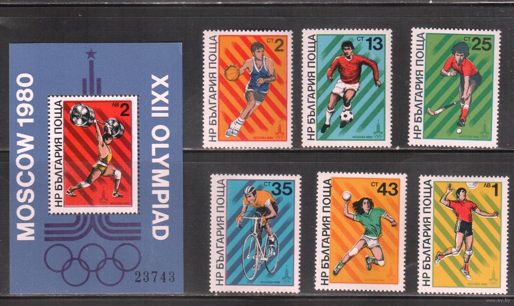 Болгария-1980 (Мих.2877-2882,Бл.101) , ** , Спорт, ОИ-1980, (полная серия),