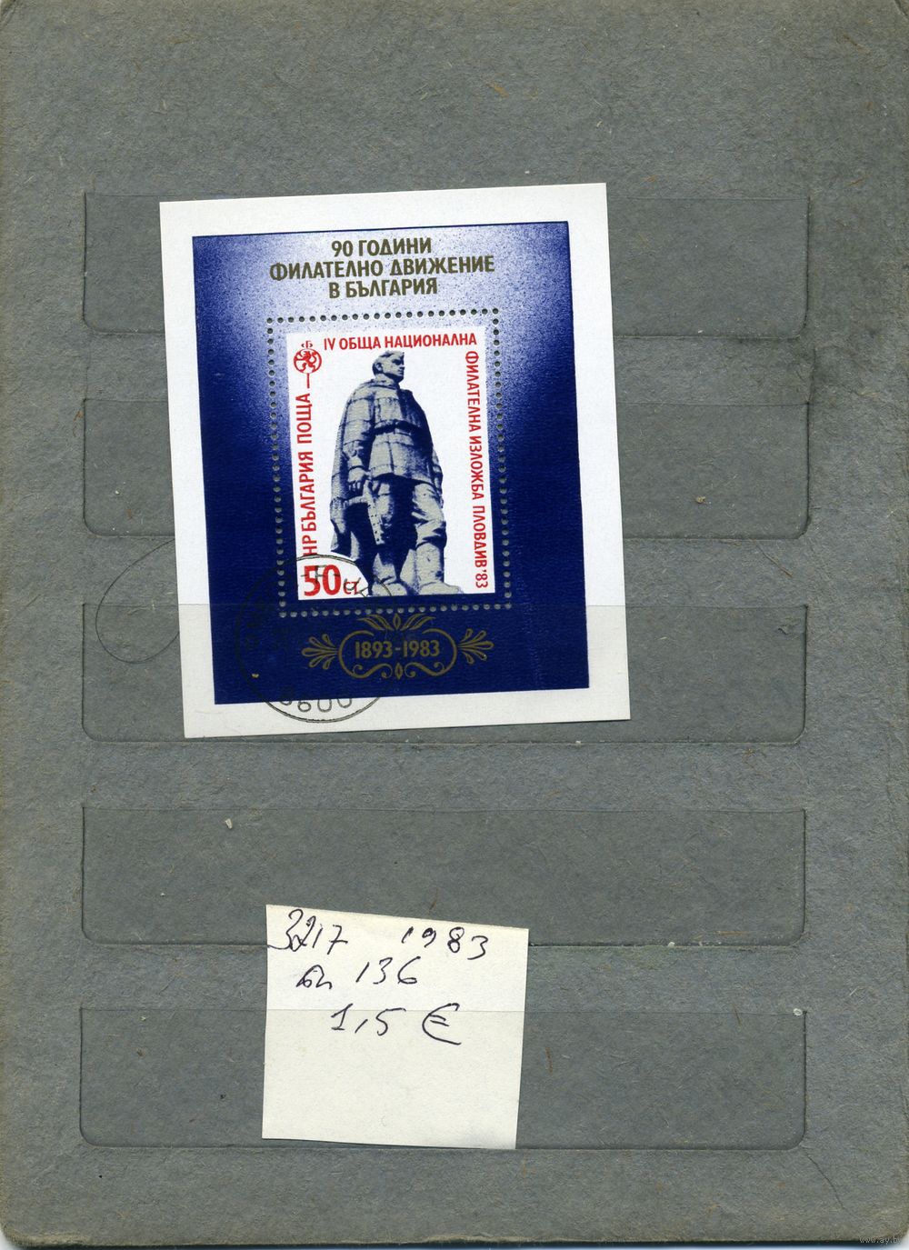БОЛГАРИЯ ,90 лет болгарской филителии почт. блок 1983 (на "СКАНЕ" справочно приведены номера и цены по Michel)